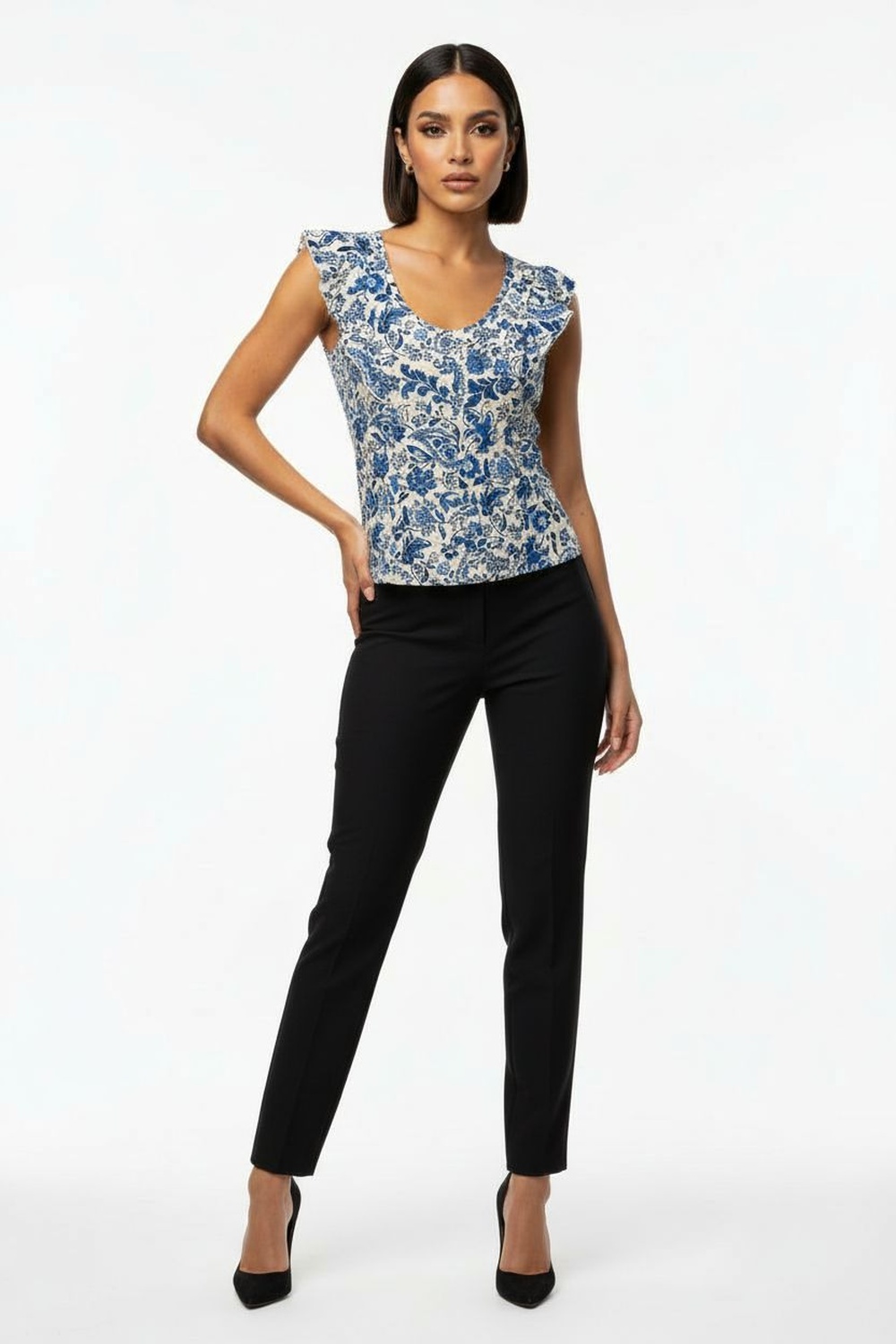 Playera sin mangas con escote en v, detalle de botón al frente, estructura ligera, ajuste recto, confección cómoda para uso diario