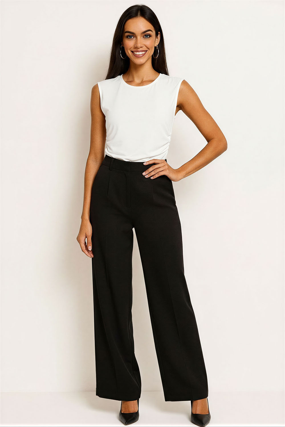 Playera sin mangas con cuello redondo que brinda comodidad, diseño con drapeado lateral que aporta ajuste favorecedor, corte ajustado que resalta la silueta, confección en tejido elástico que permite libertad de movimiento