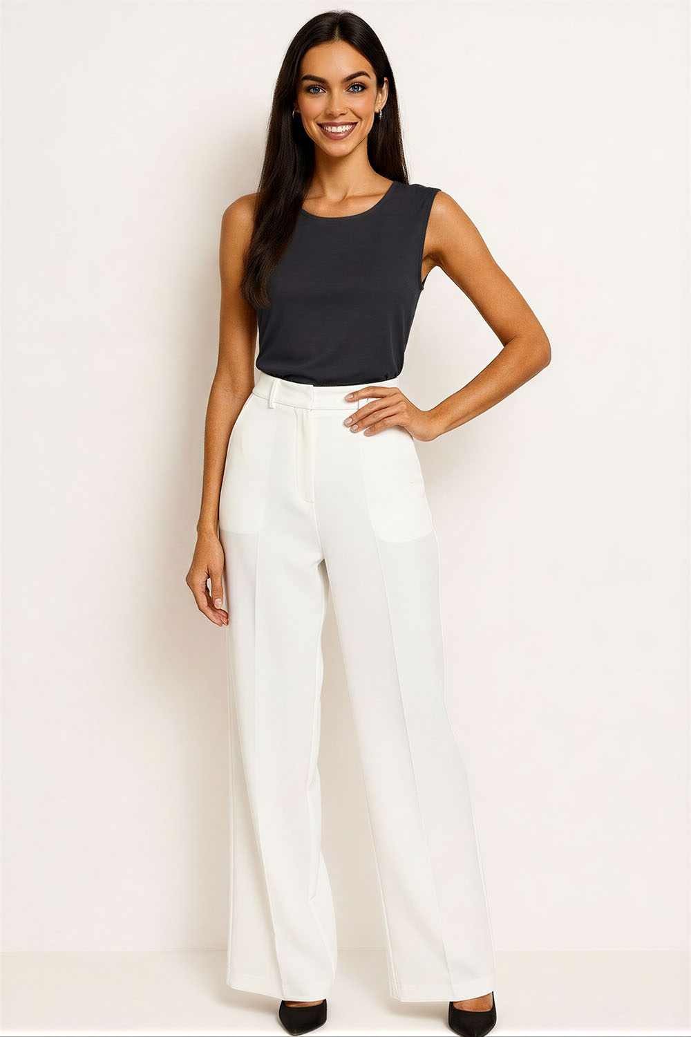 Blusa tipo chaleco sin mangas con escote redondo amplio, detalle de moños al frente que permite ajuste personalizado, corte recto de largo a la cintura que brinda comodidad, confección con textura ligera que aporta frescura y libertad de movimiento, acabado limpio en bordes que mejora la presentación