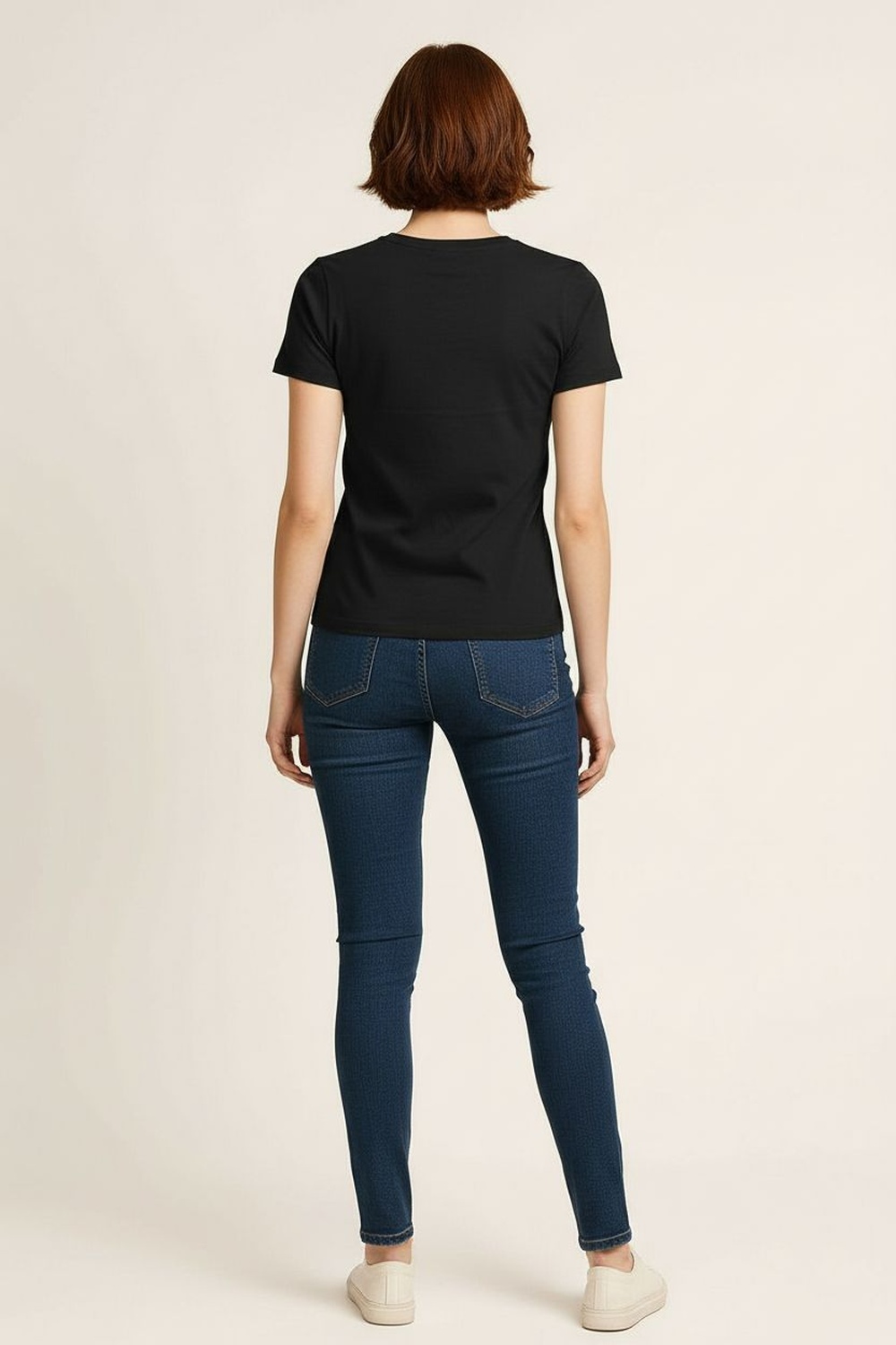 Playera de silueta recta con cuello redondo y manga corta, aplicación de texto al frente que resalta el diseño, confección en tela suave de tacto ligero, acabado cómodo que permite ajuste natural y libertad de movimiento durante todo el día