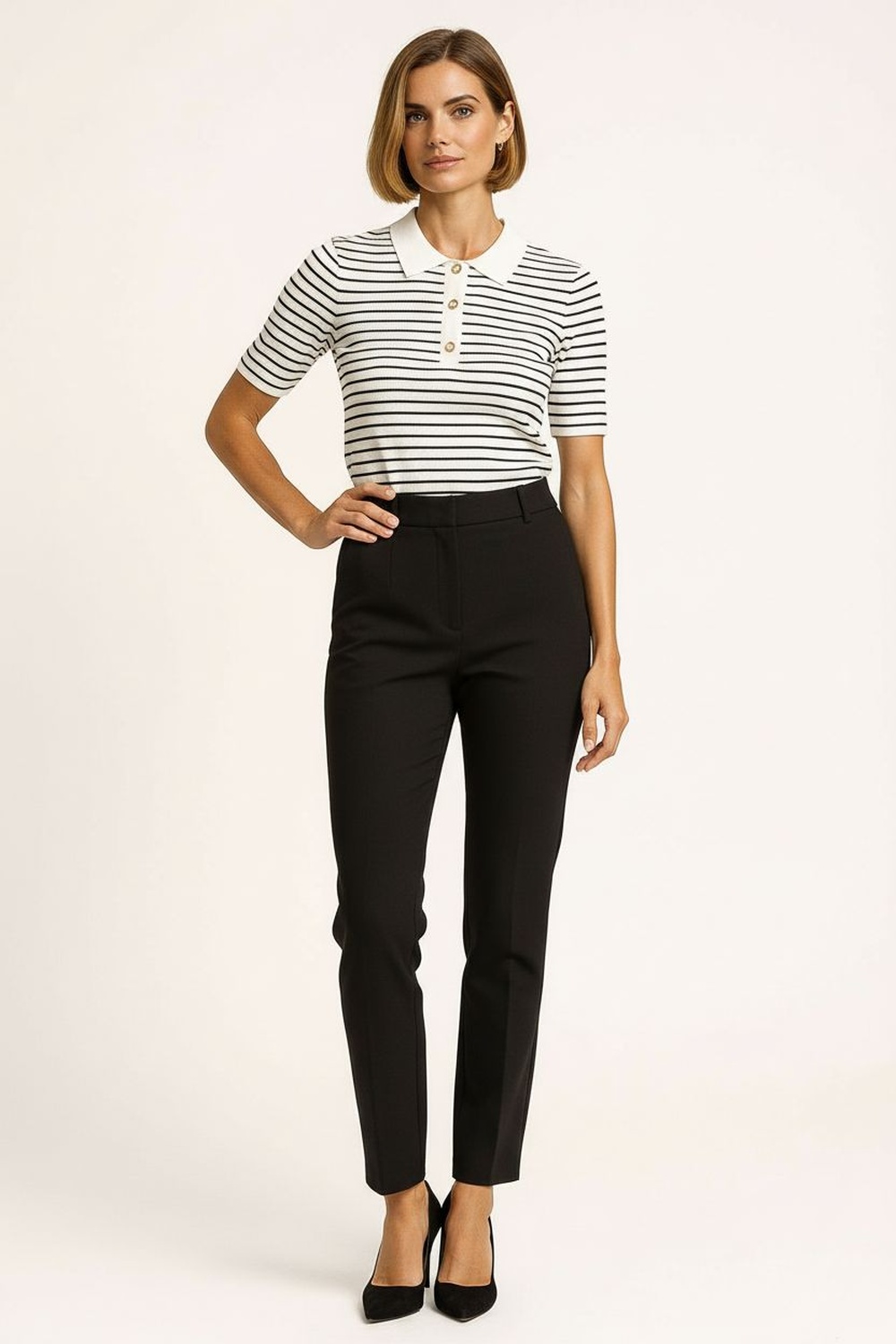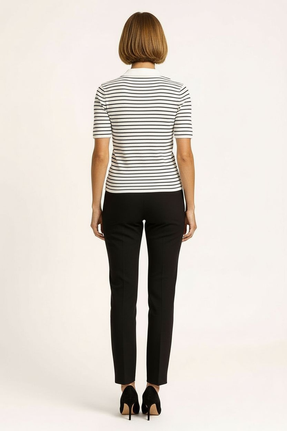 Suéter sin mangas cuello camisero media aletilla con botones tejido acanalado silueta ajustada terminación recta confección cómoda