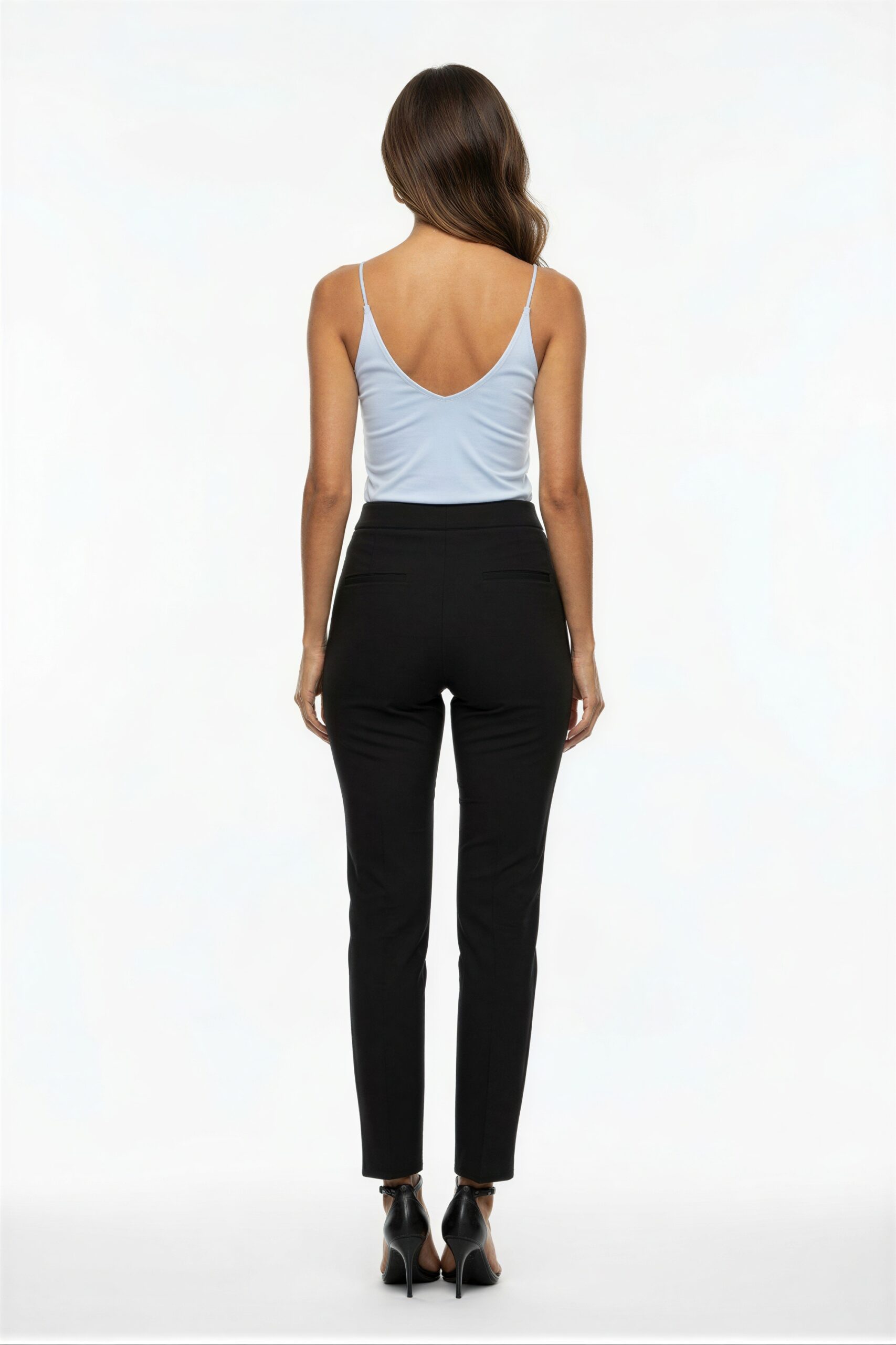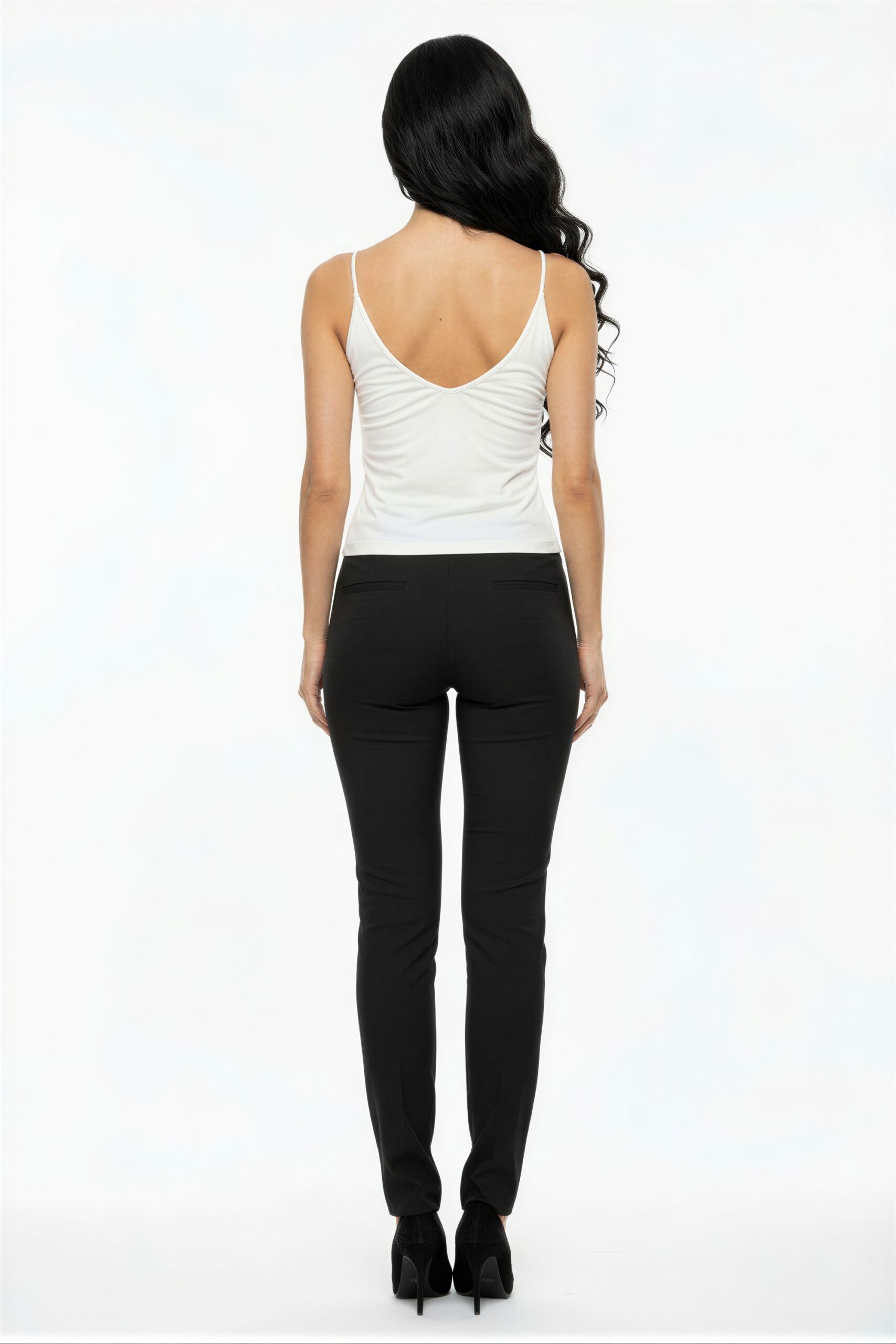 Playera sin mangas escote recto silueta ajustada abertura en espalda cierre inferior confección elástica ajuste cómodo