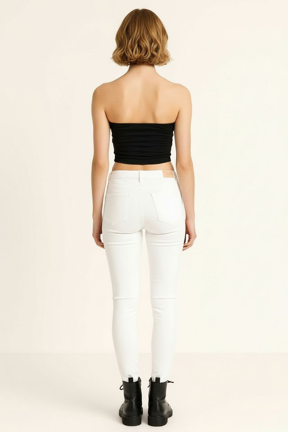 Platera top tipo banda de corte ajustado que realza la figura, diseño strapless que deja los hombros descubiertos aportando un look moderno y versátil, pretina elástica en la parte superior que asegura un ajuste firme y cómodo, confección en tela suave y elástica que se adapta al cuerpo brindando libertad de movimiento, acabado minimalista ideal para outfits frescos y juveniles
