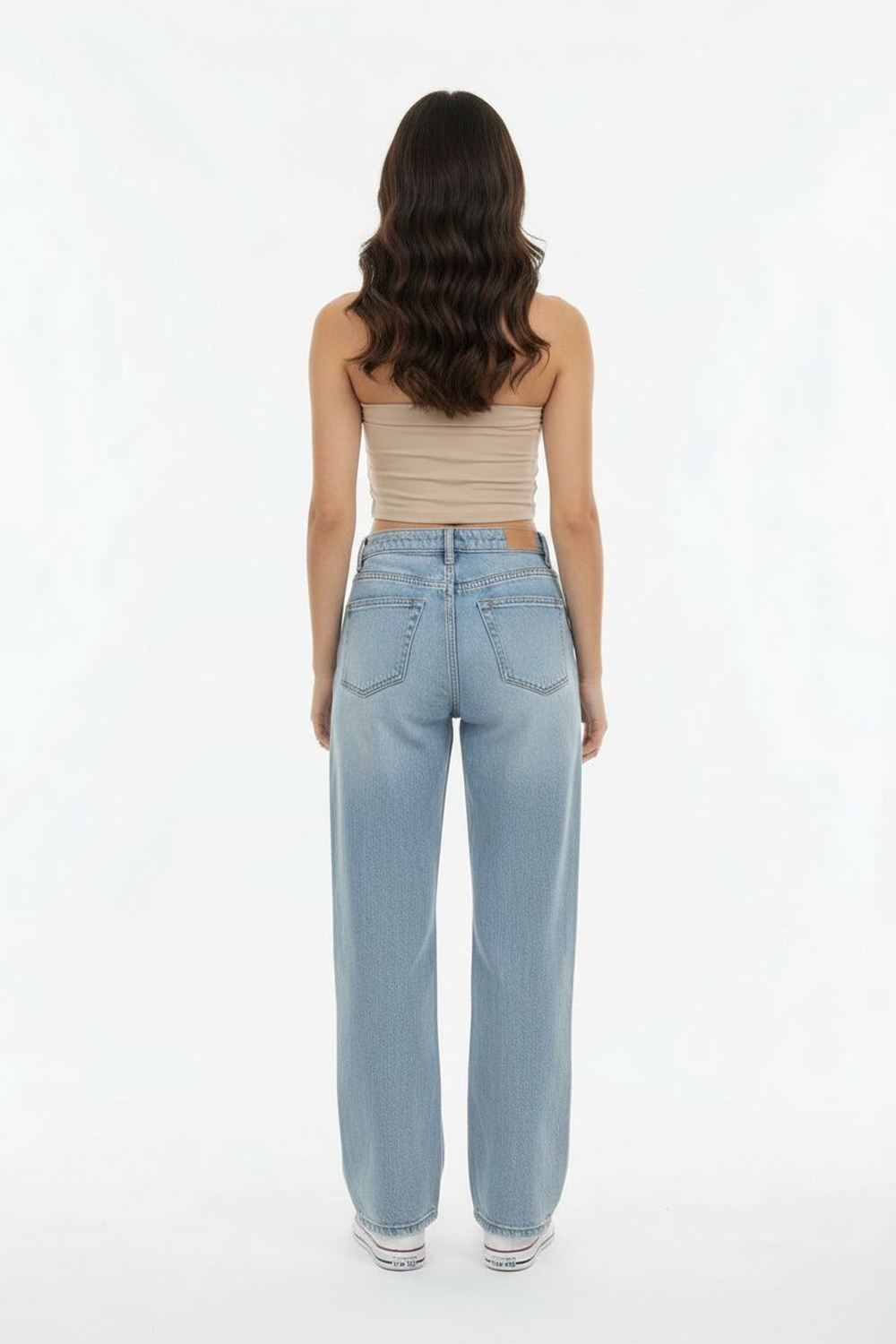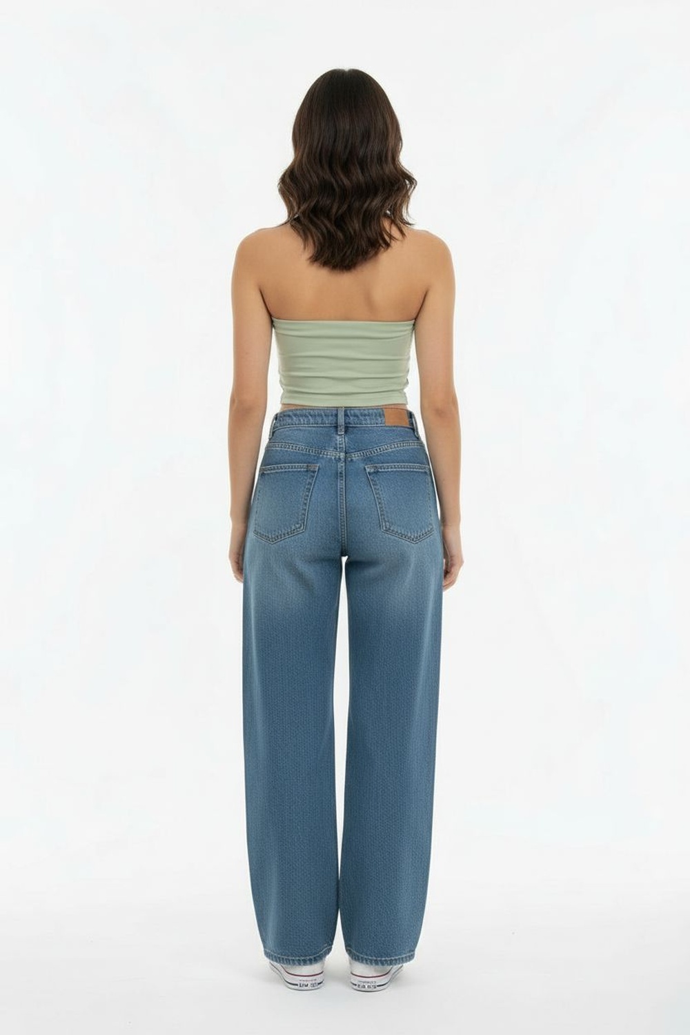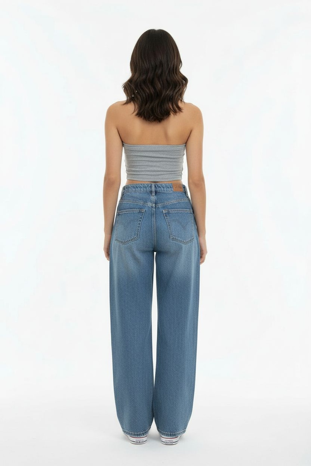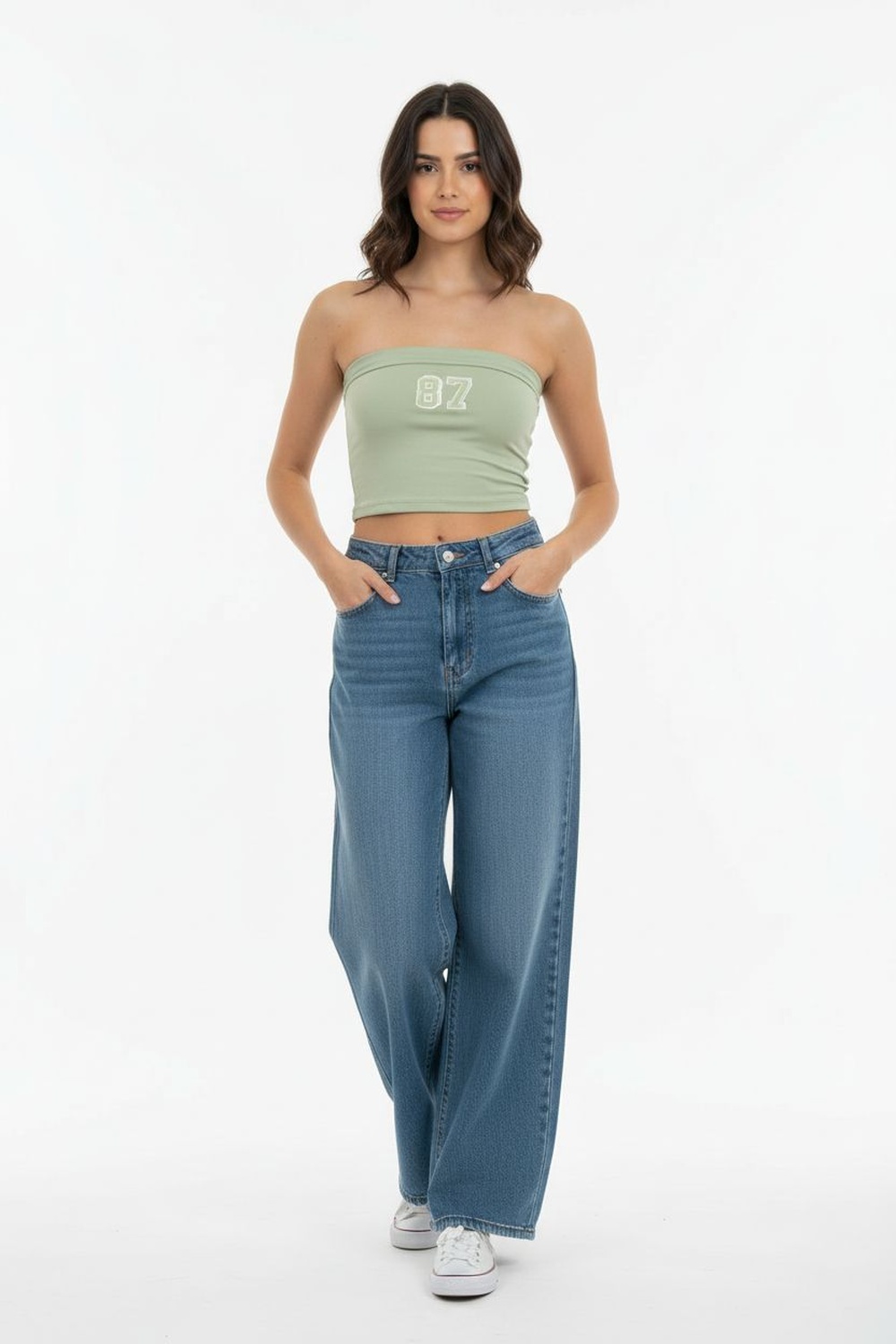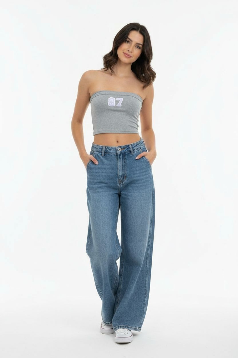 Top tipo banda con ajuste elástico y diseño sin tirantes, estructura ceñida al cuerpo con acabado recto