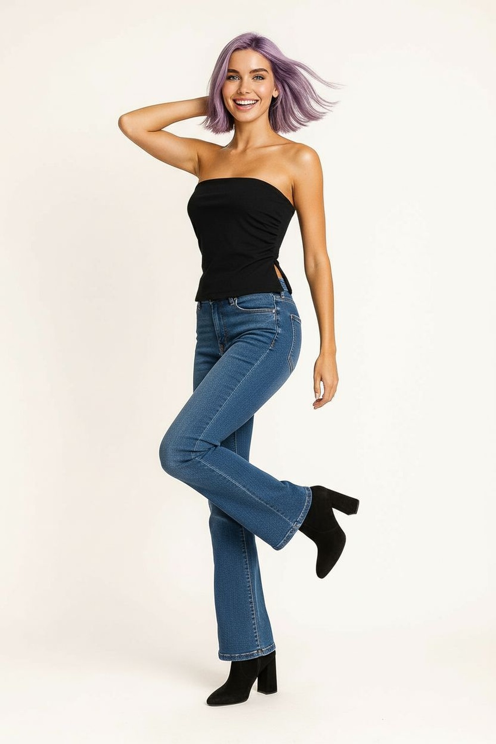 Top strapless de corte ajustado con estructura que se adapta al torso, confección con acabado limpio que genera una apariencia continua, largo a la cintura que realza el contorno, diseño minimalista que facilita el ajuste al cuerpo sin perder soporte, confección de tejido flexible que mejora la experiencia al usarlo