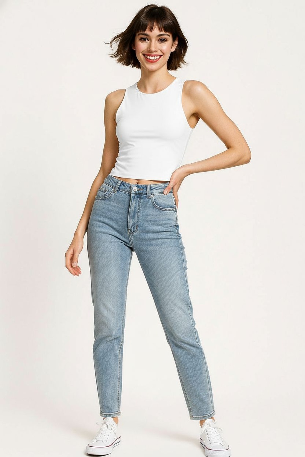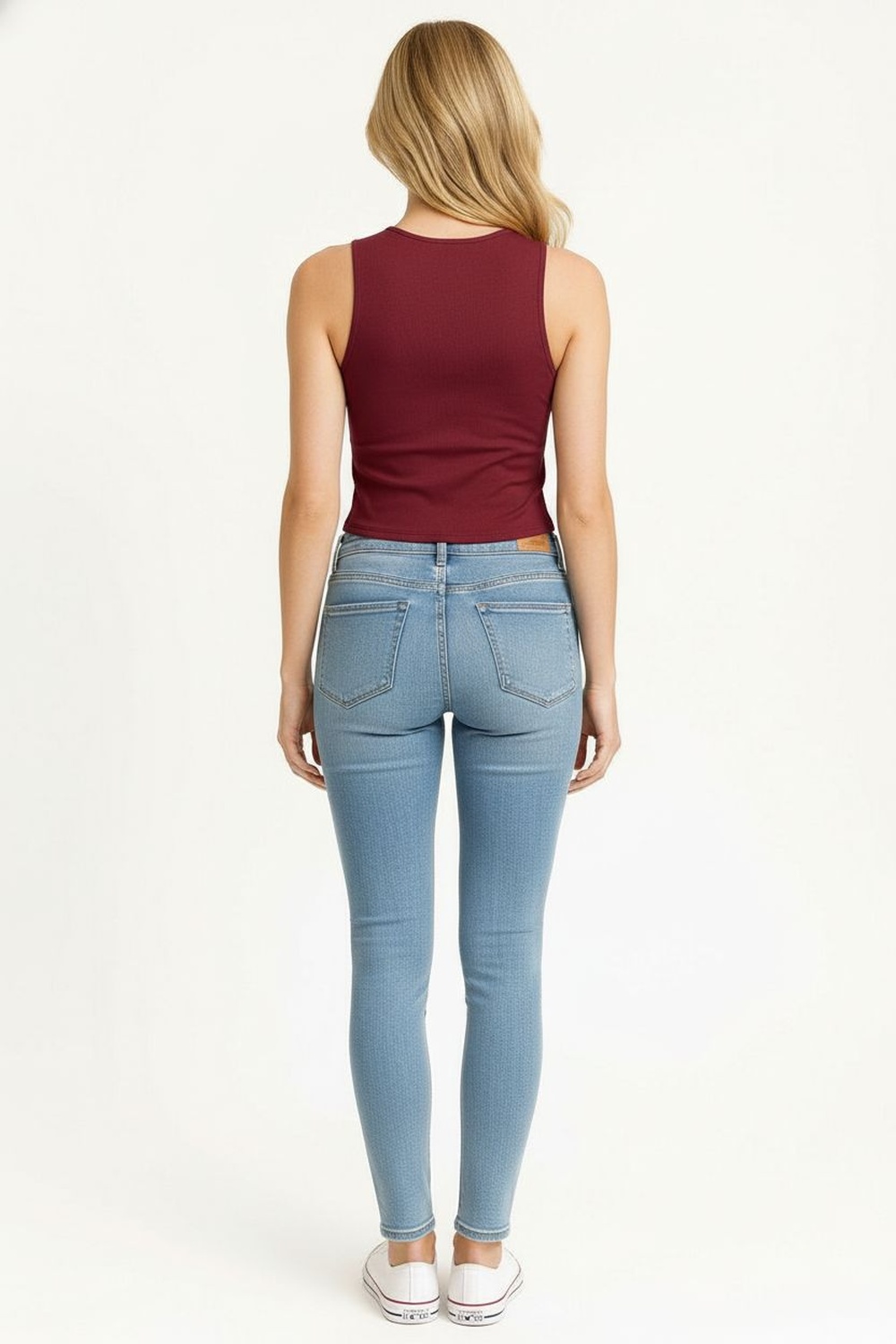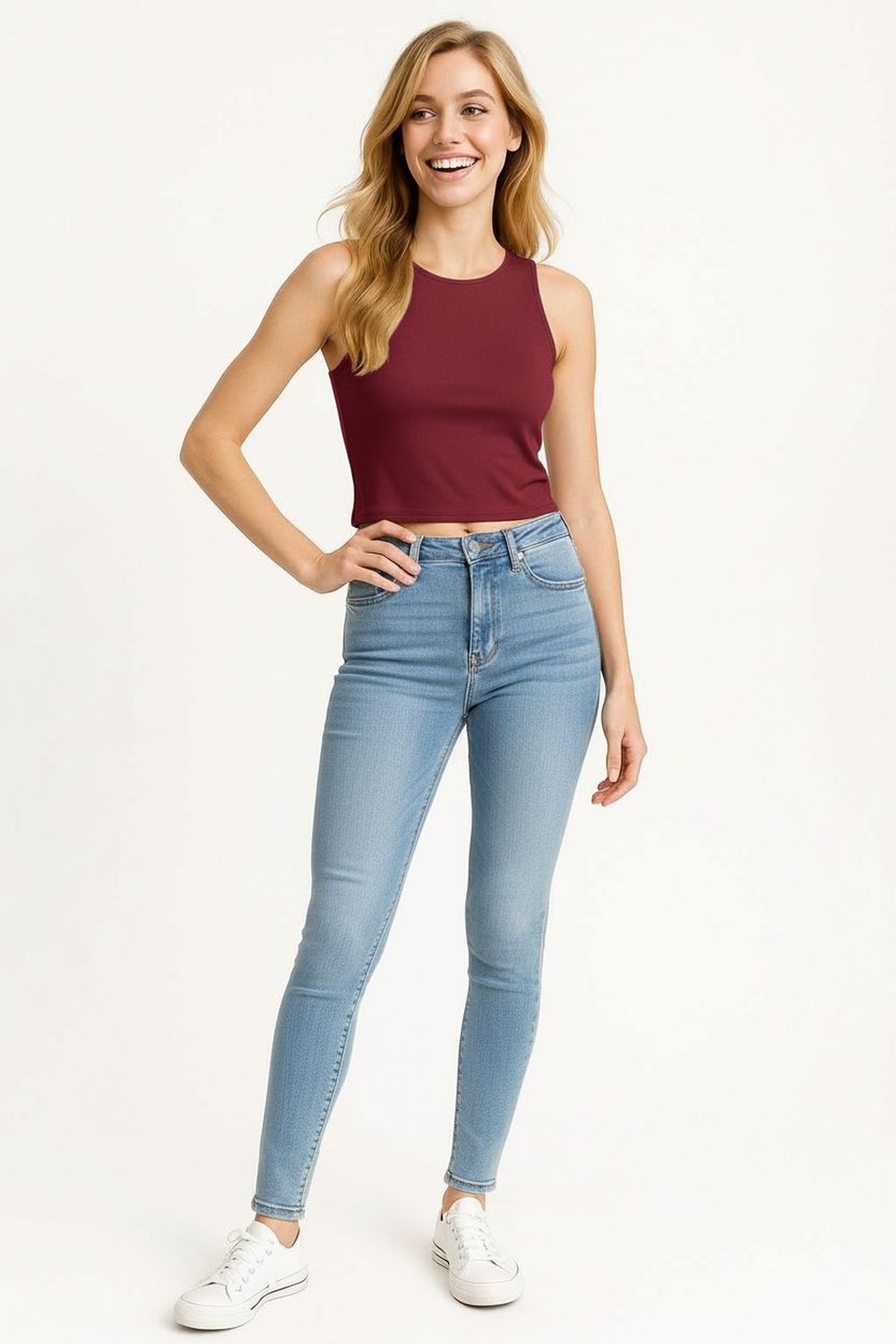 Top sin mangas con cuello redondo y corte recto que realza la figura, confeccionado en tejido elástico de tacto suave que se adapta al cuerpo con comodidad, terminados reforzados que aportan resistencia y apariencia limpia, diseño ideal para usar debajo de camisas o prendas abiertas