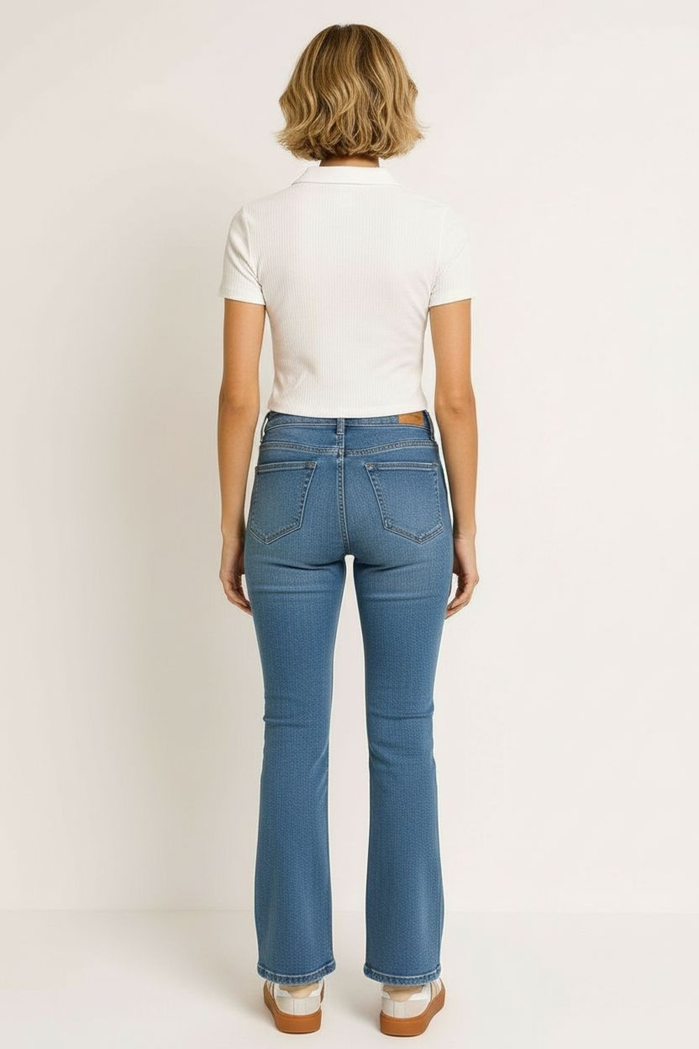 Playera de tejido rib con estructura ajustada que define el contorno del cuerpo, cuello redondo con terminado limpio y resistente, manga corta con bies integrado que aporta mayor durabilidad en el borde, largo corto con dobladillo recto que mantiene la forma de la prenda, bordado frontal aplicado con precisión que agrega detalle distintivo, confección en material flexible que brinda comodidad durante el uso diario
