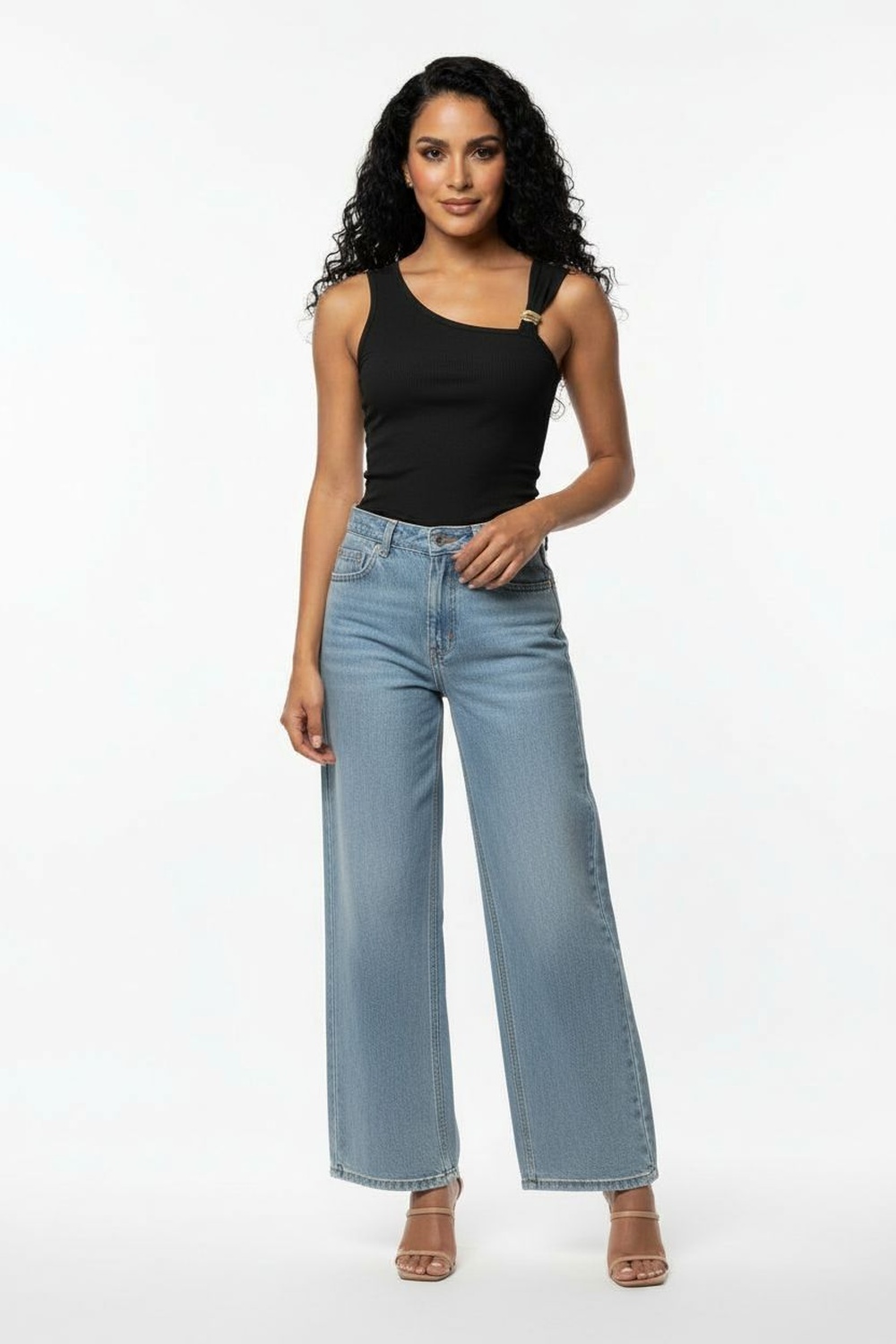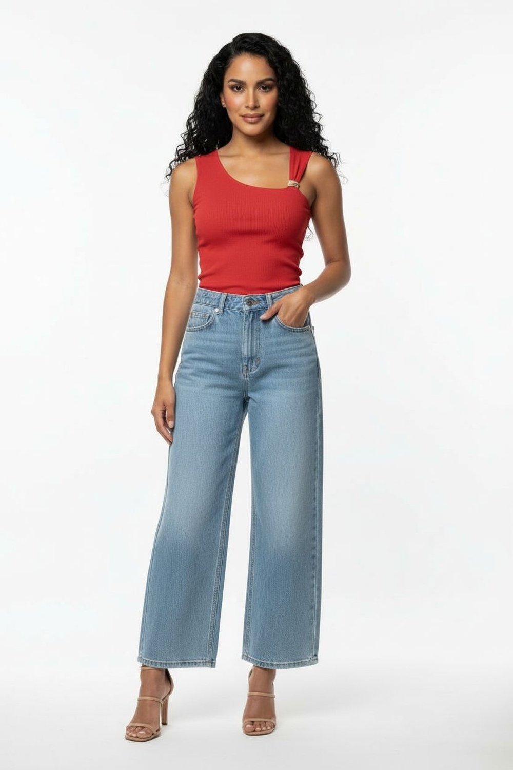 Playera un tirante, escote asimétrico con aplicación en hombro, diseño ajustable con estructura ligera y cómoda para uso diario