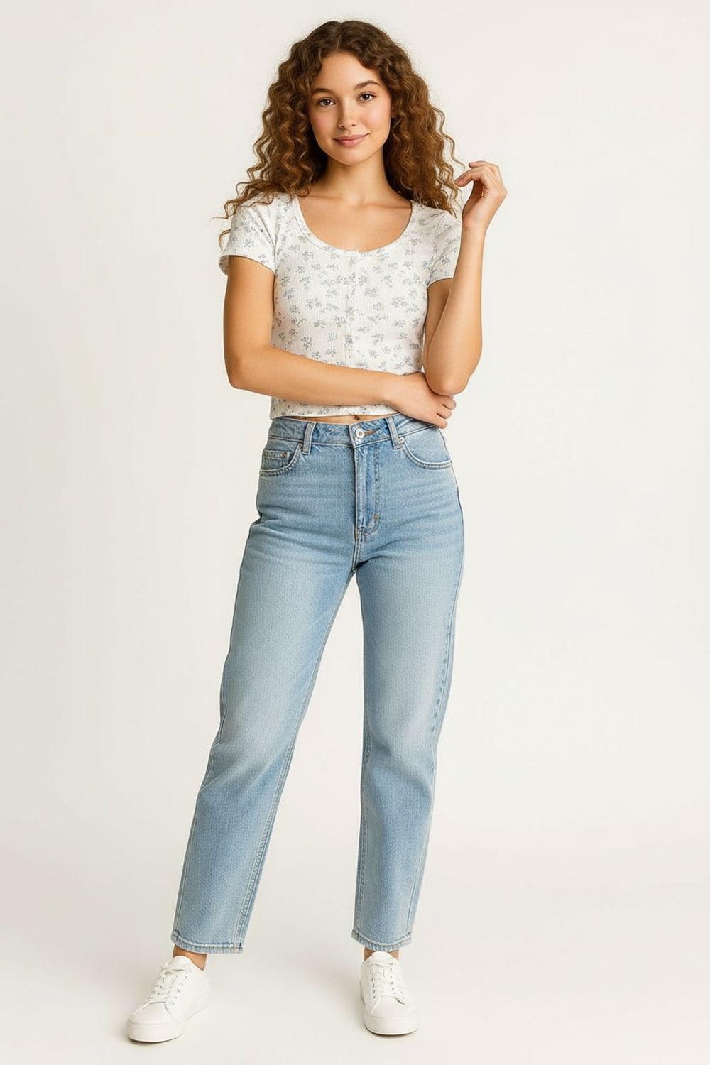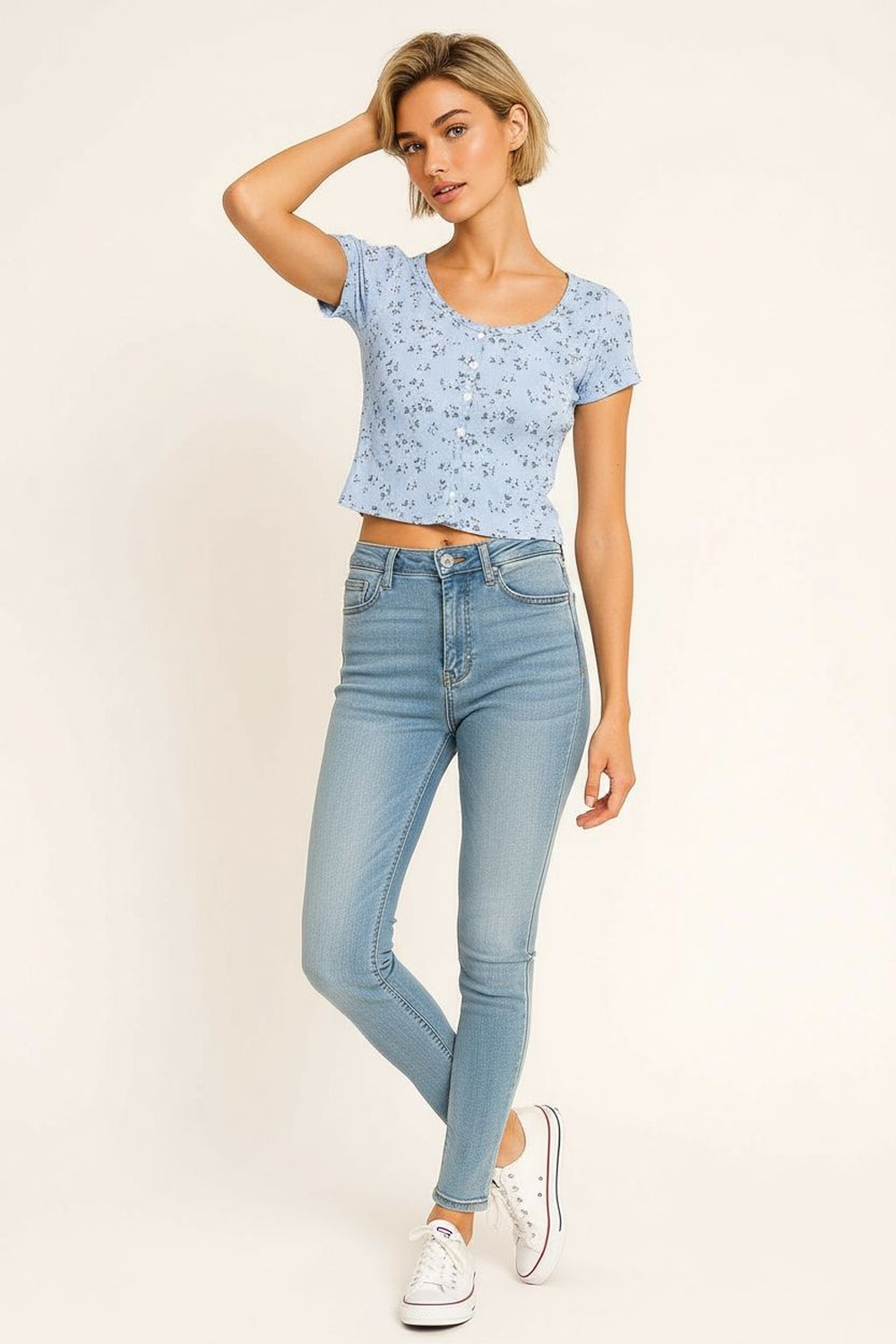 Playera waffle de manga corta con textura tipo panal que aporta estructura y frescura, escote redondo amplio que estiliza la parte superior, botonadura frontal funcional que facilita el ajuste, corte recto ligeramente ajustado al cuerpo que define la silueta, largo a la cintura que permite un fit cómodo y versátil para uso diario