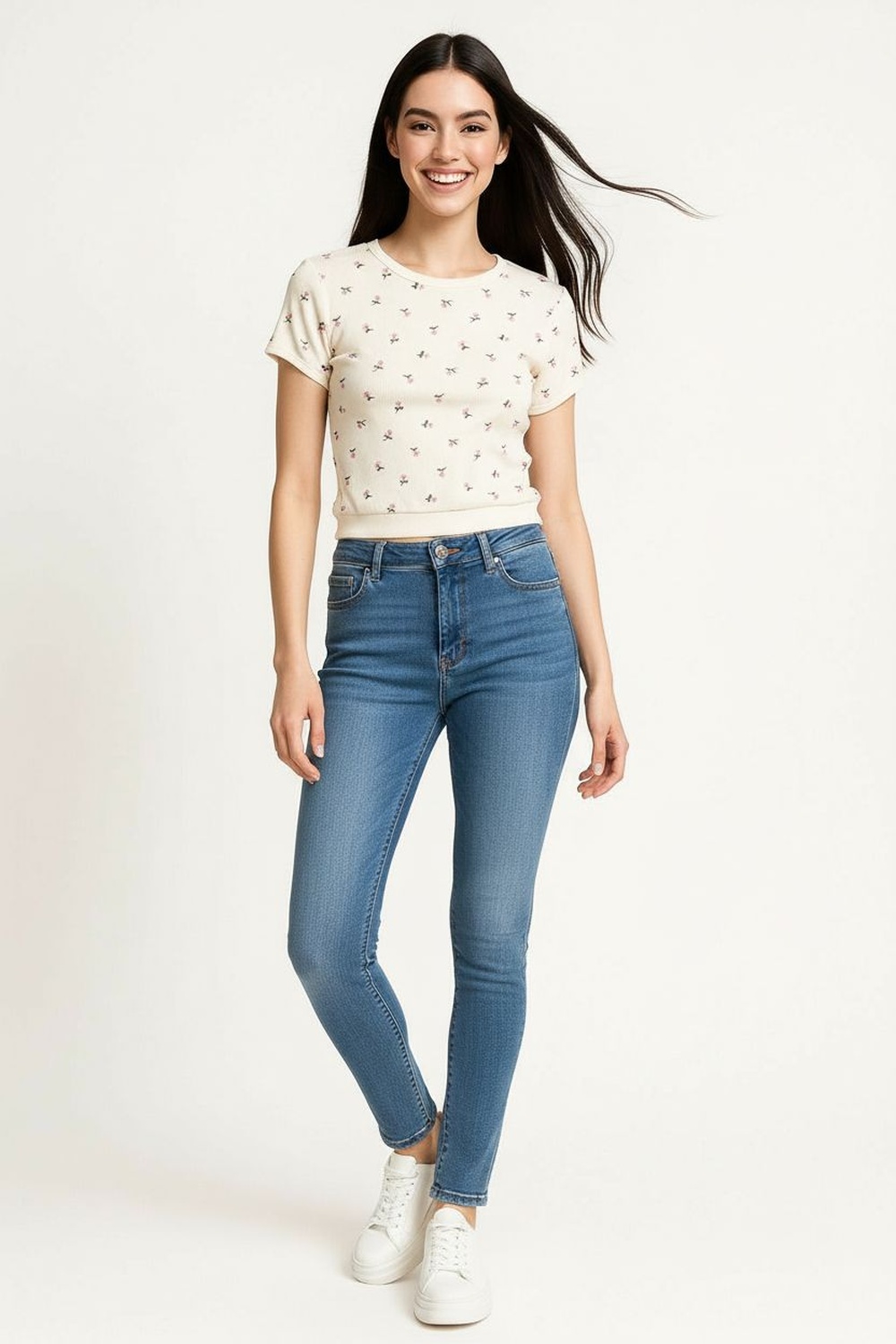 Playera de manga corta con cuello redondo clásico y silueta ajustada al cuerpo, confección en tejido waffle que brinda textura y transpirabilidad, largo regular que permite uso versátil, acabado suave al tacto que aporta comodidad prolongada, estructura ligera pensada para el día a día