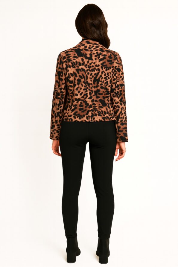Saco abierto con diseño de picos frontales que estilizan la silueta, manga larga con elástico fruncido en el puño para un ajuste cómodo, confeccionado en tela ligera que brinda movilidad, ideal para complementar looks casuales o de oficina con un toque moderno
