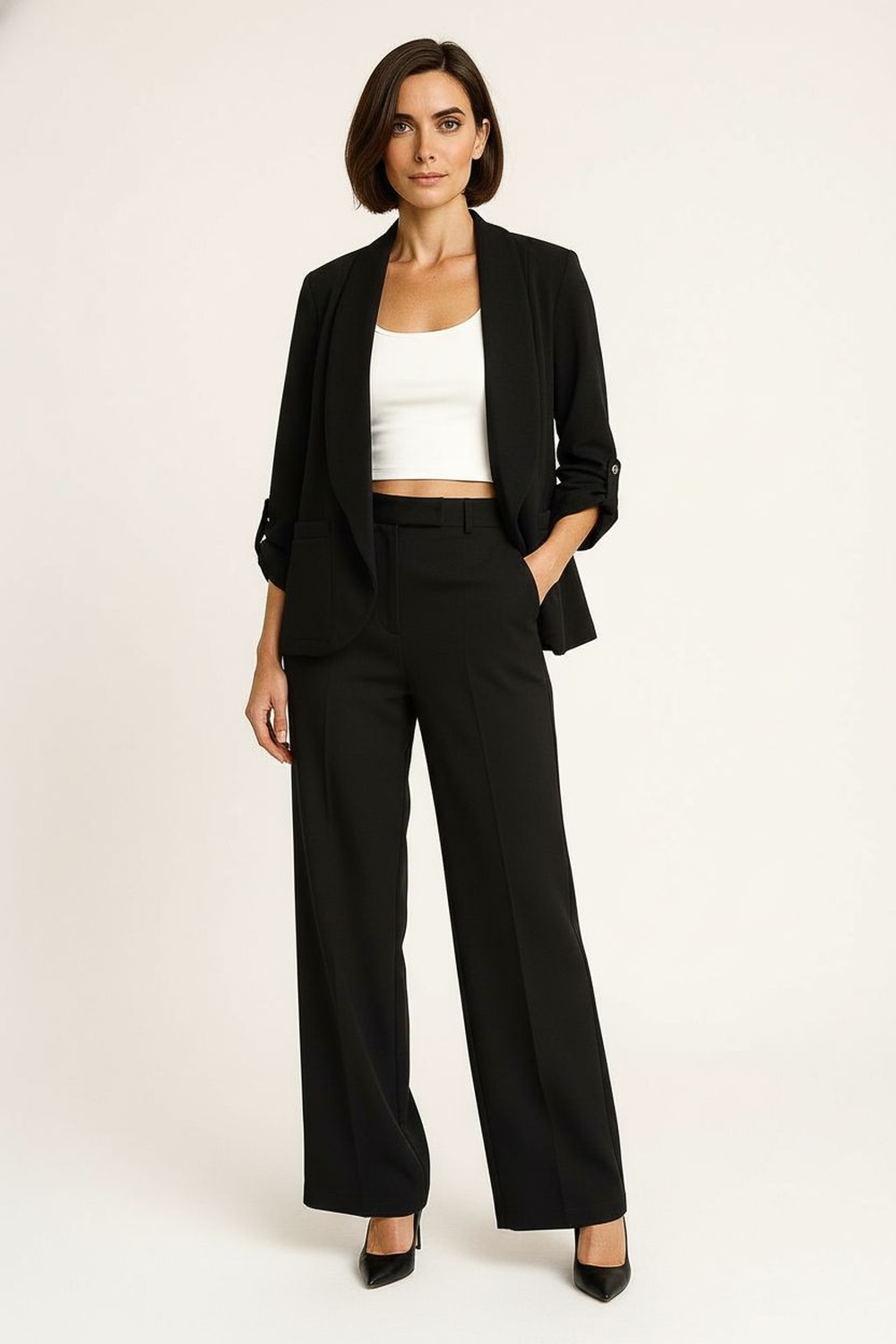Saco crop formal abierto con manga 3/4, no incluye top