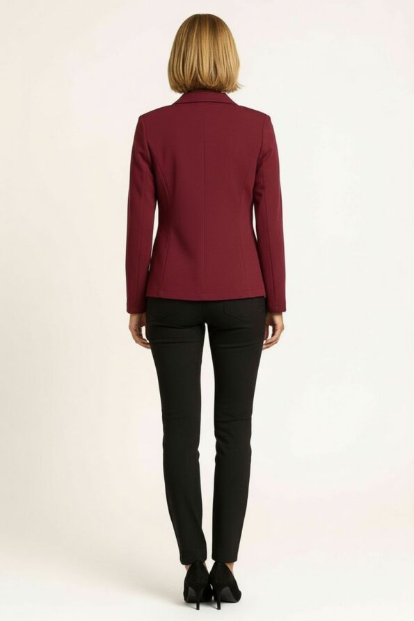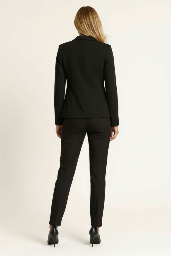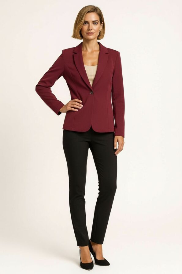 Saco de corte estructurado con solapa clásica que aporta elegancia, cierre frontal con un botón que define la cintura, abertura lateral que mejora la movilidad y el ajuste, mangas largas con acabado limpio, confección en tejido firme que mantiene la forma y brinda un estilo sofisticado y moderno para distintas ocasiones