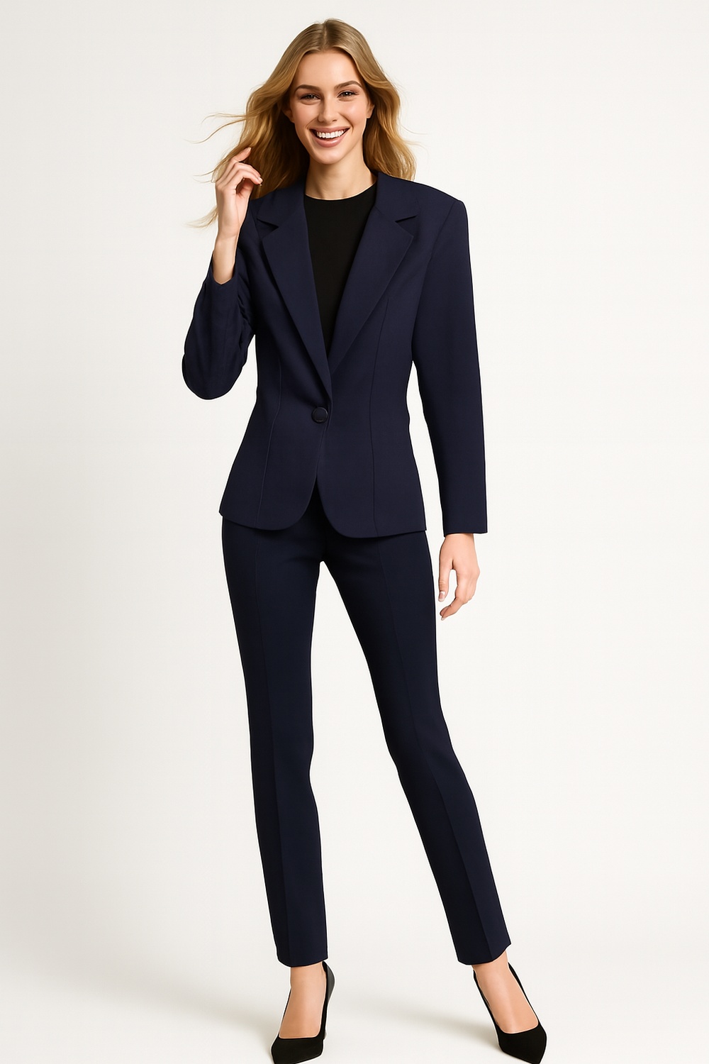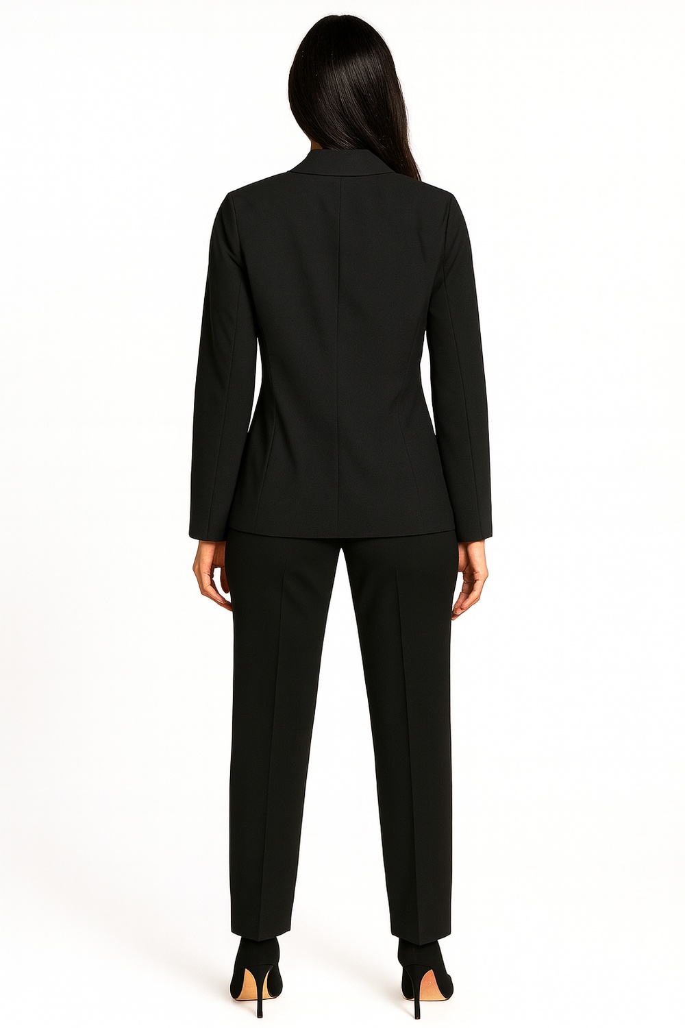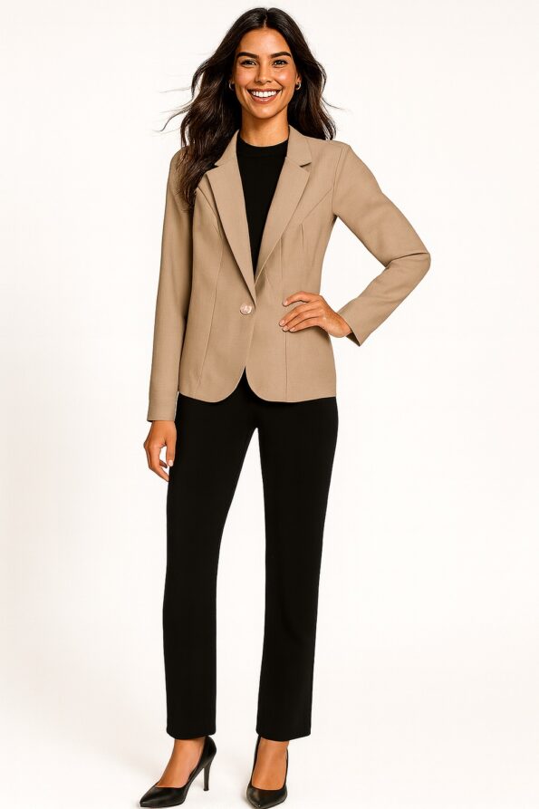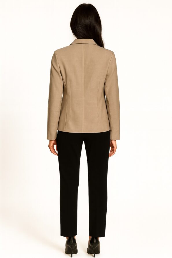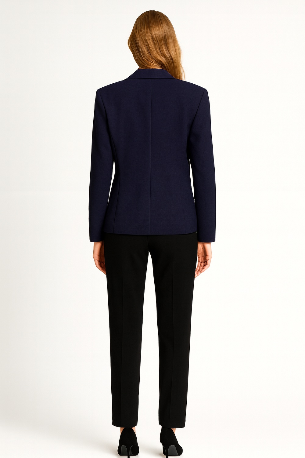 Saco con cuello camisero estructurado que aporta elegancia, cierre frontal con un botón que realza la figura, pinzas de entalle que favorecen la silueta, manga larga con acabado limpio que brinda comodidad, confección en tejido firme que ofrece un ajuste moderno y sofisticado