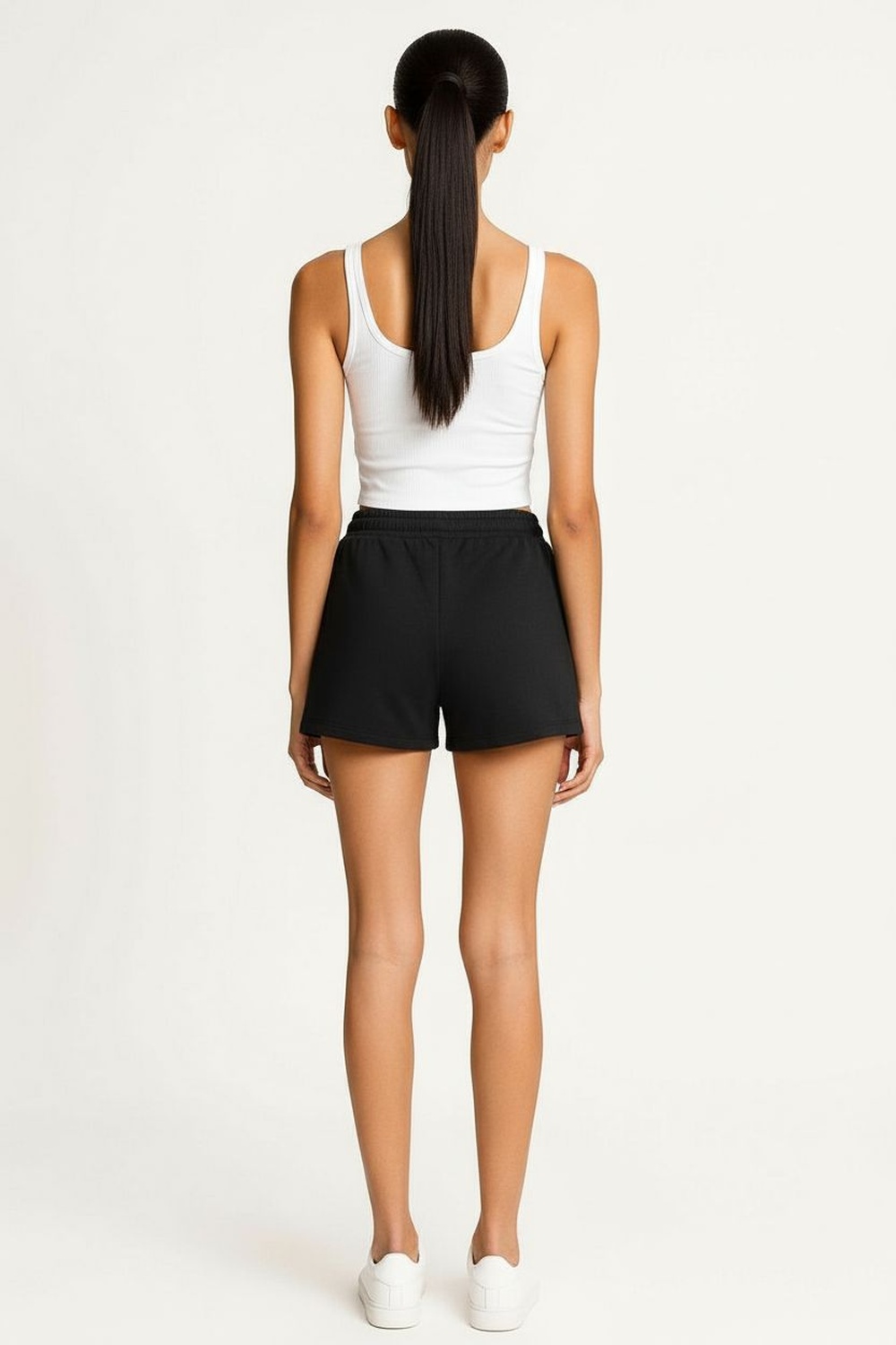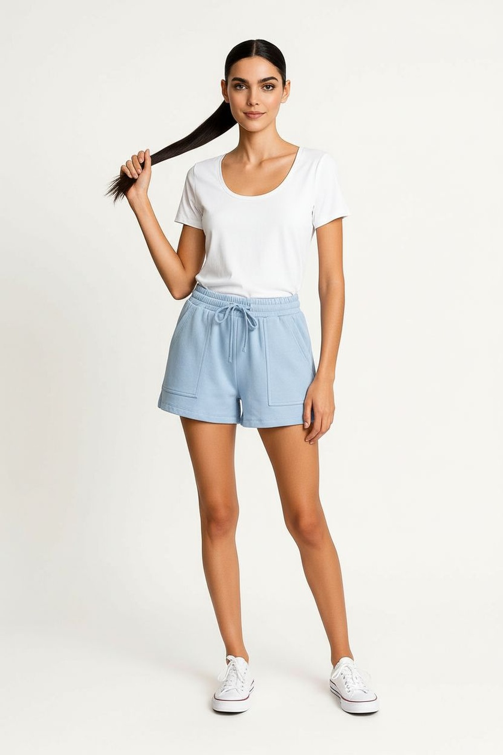 Short de tejido con textura acanalada de confección suave y flexible, pretina elástica con jareta ajustable que brinda sujeción cómoda, corte recto con largo medio que aporta libertad de movimiento, bolsillos funcionales integrados en costados para practicidad diaria, terminación limpia en ruedo que mantiene estructura uniforme