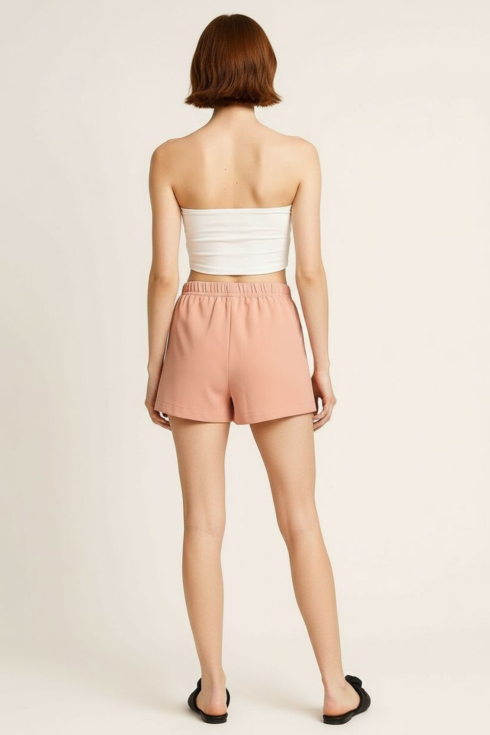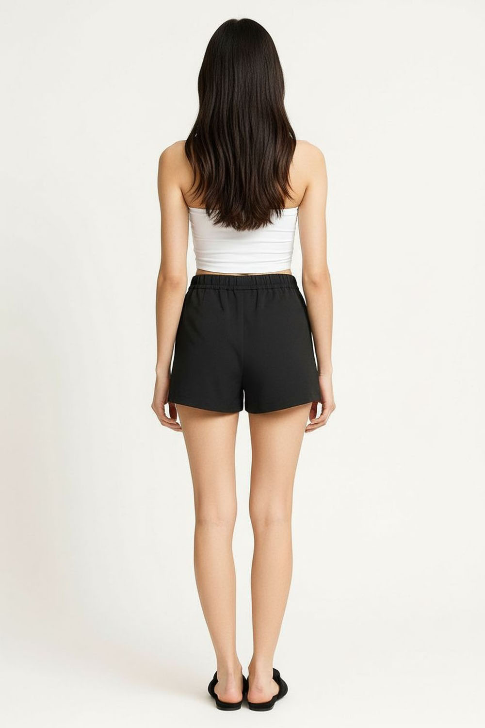 Short de tiro medio con pretina elástica que facilita el ajuste, corte holgado que permite libertad de movimiento, bolsillos funcionales integrados, confección en tejido texturizado de caída natural para uso diario cómodo