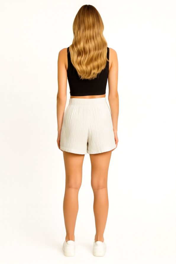 Short de tiro medio con pretina ancha y elástica que incorpora jareta ajustable para mayor comodidad, cintura con detalle fruncido que aporta un acabado moderno, silueta amplia que favorece la movilidad y brinda frescura, confección en tejido ligero con tacto suave que garantiza confort en el uso diario