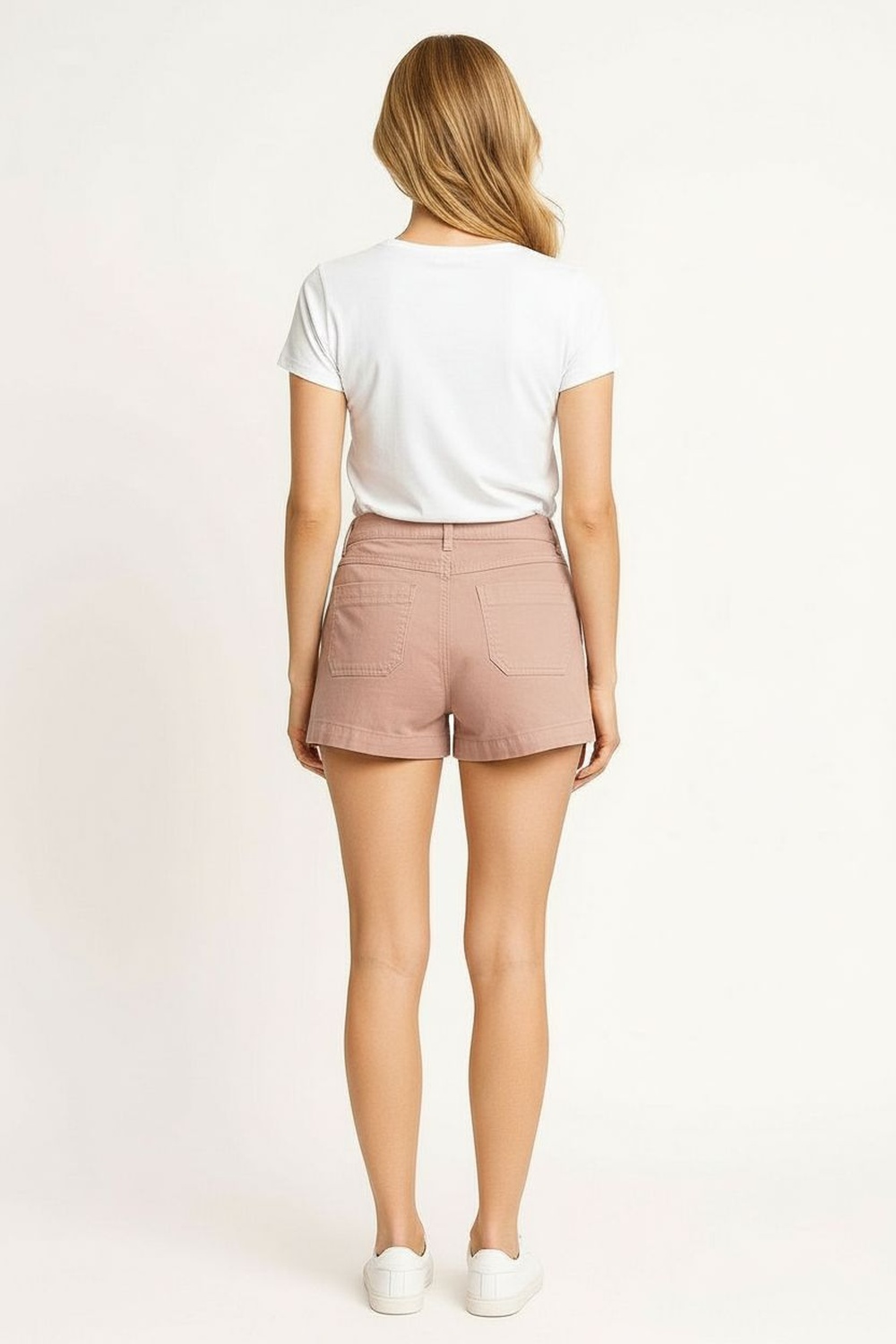 Short tiro medio, pretina con aplicación metálica, corte recto, estructura firme, terminado limpio, FIT REGULAR