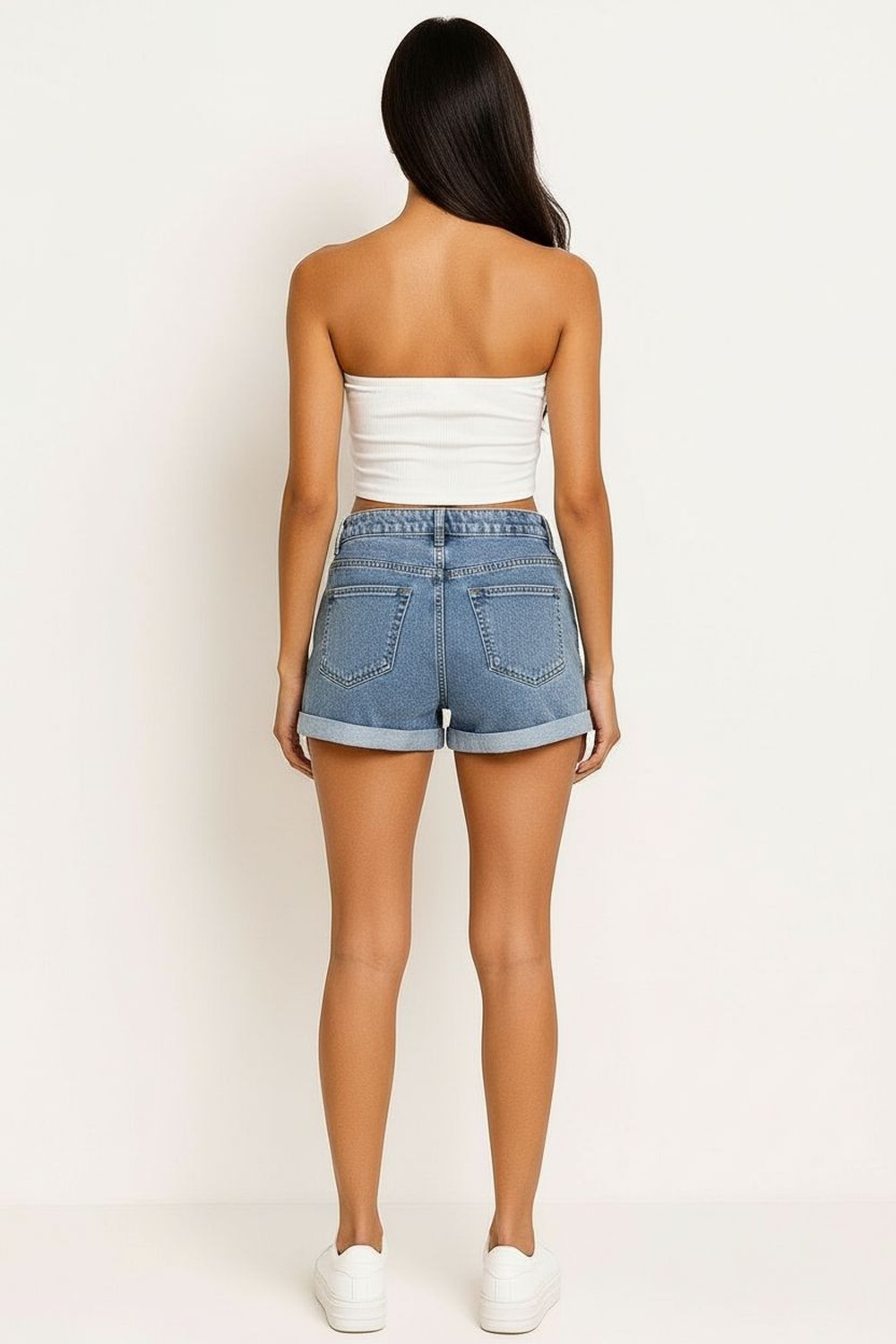 Short valenciana, pretina con botón y cierre, bolsas delanteras y traseras, terminación con doblez, estructura firme