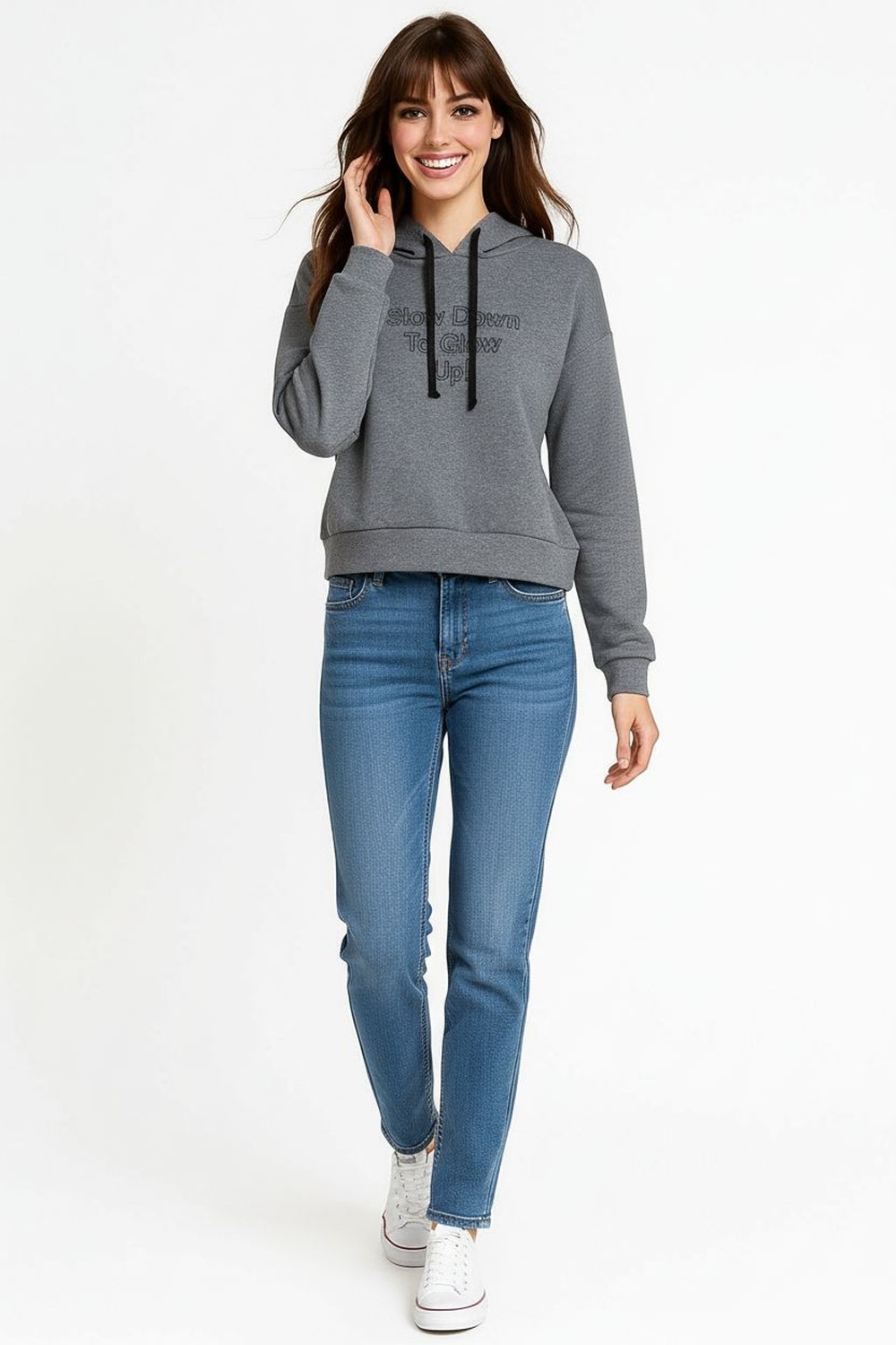Sudadera estilo french con capucha ajustable y cierre frontal metálico, confeccionada en tejido suave y cálido con silueta moderna y versátil, perfecta para un look casual y cómodo en temporada