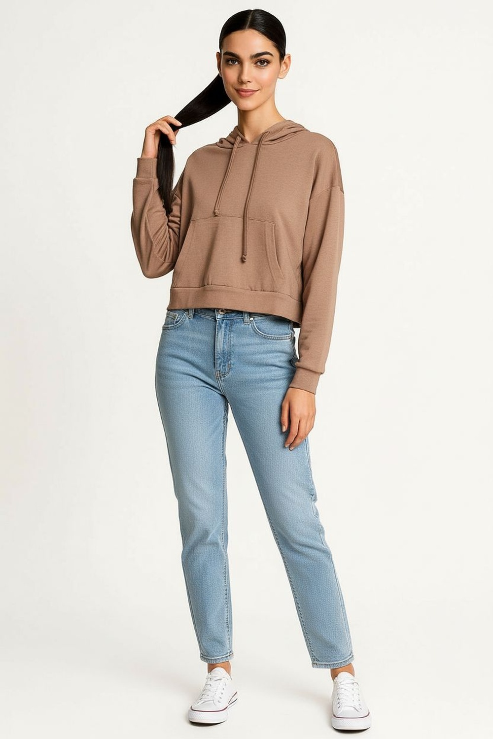 Sudadera con capucha ajustable mediante cordón, bolsillo frontal tipo canguro para funcionalidad, puños y pretina acanalados que brindan ajuste seguro, confección en tejido suave que proporciona comodidad diaria, estructura relajada que mantiene buena movilidad al vestir
