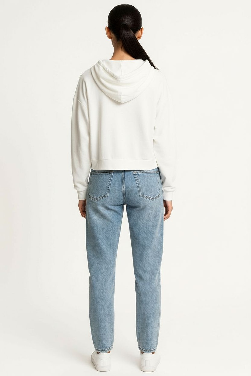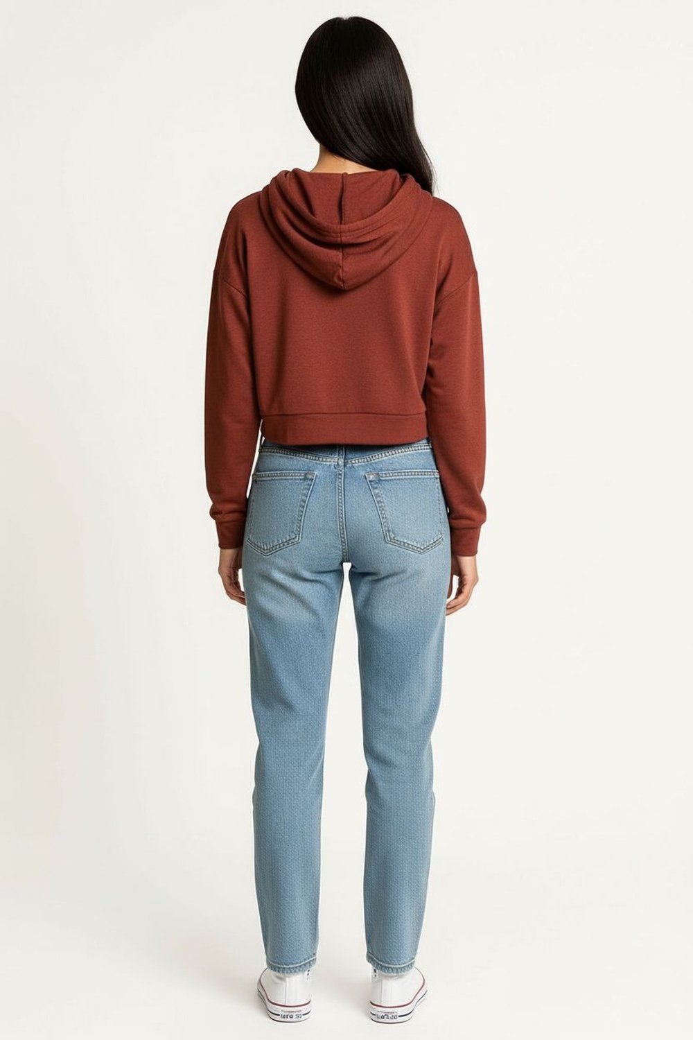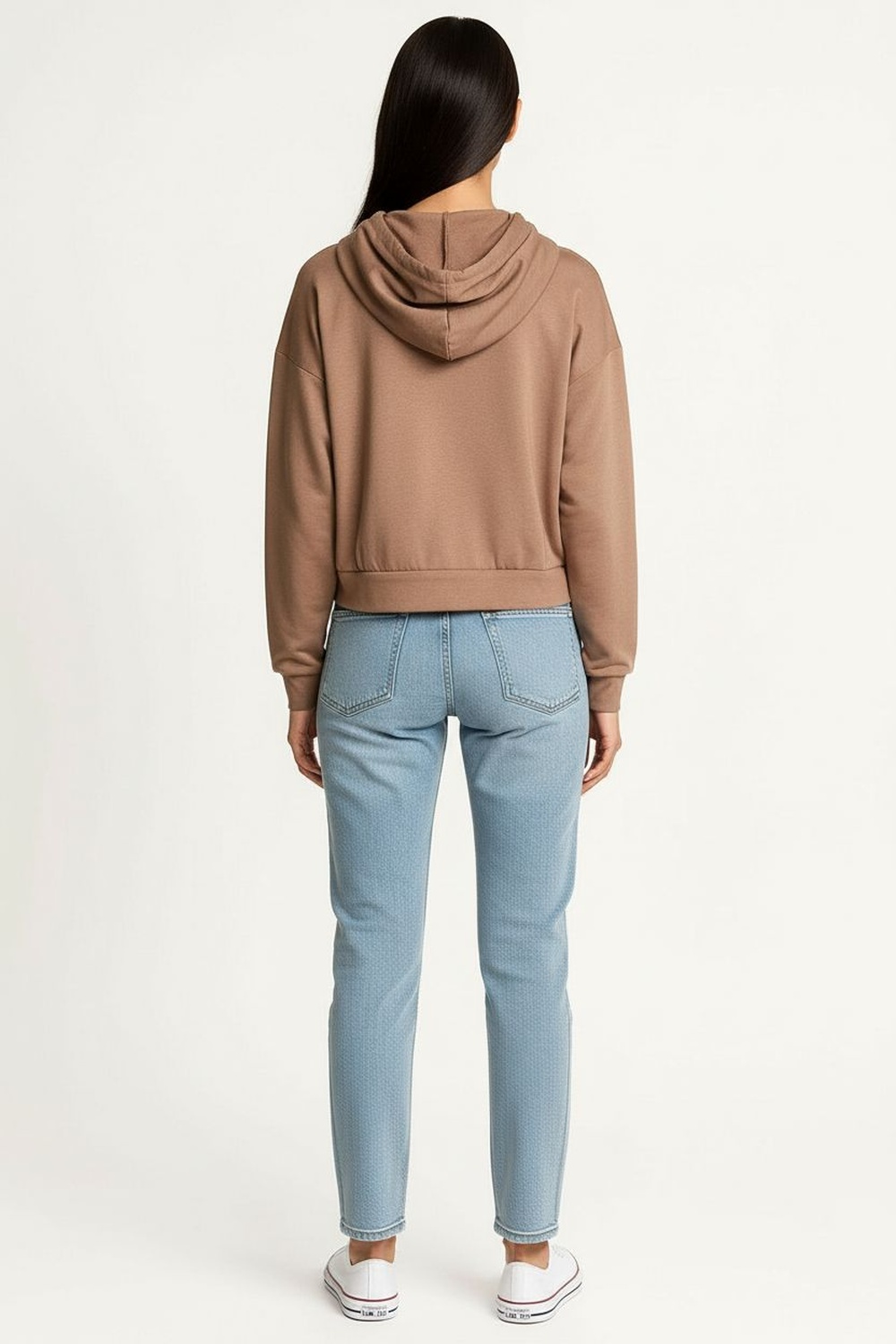 Sudadera con cuello alto y medio cierre que facilita el ajuste, confeccionada en tejido suave de punto elástico que brinda confort, diseño de manga larga con costuras ergonómicas que favorecen el movimiento, corte corto que aporta un toque moderno, terminaciones limpias que aseguran un acabado pulido y contemporáneo