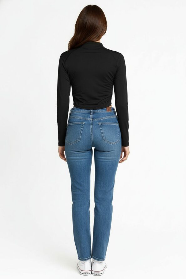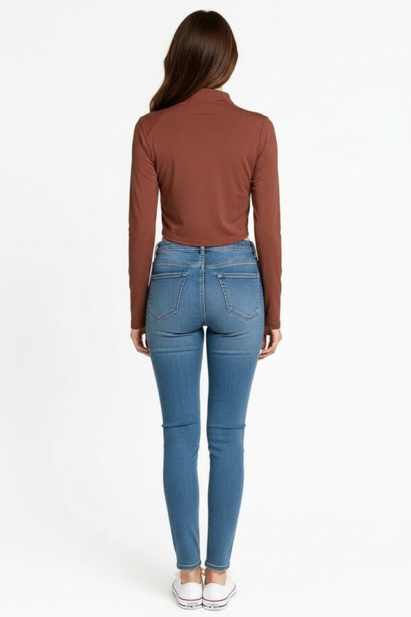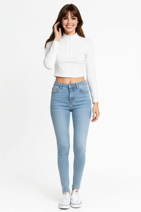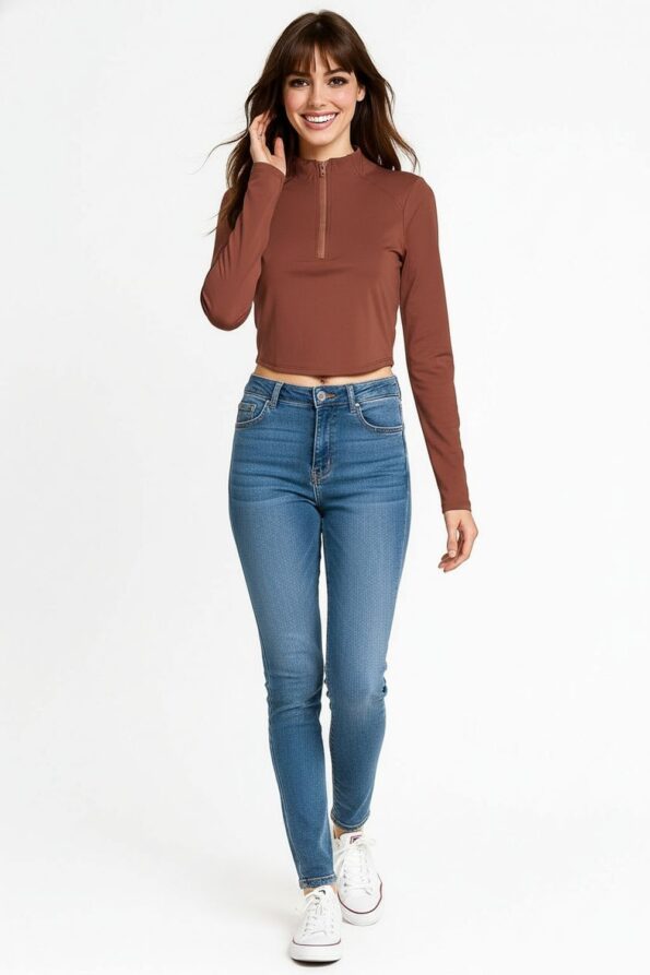 Sudadera con cuello alto y medio cierre que facilita el ajuste, confeccionada en tejido suave de punto elástico que brinda confort, diseño de manga larga con costuras ergonómicas que favorecen el movimiento, corte corto que aporta un toque moderno, terminaciones limpias que aseguran un acabado pulido y contemporáneo