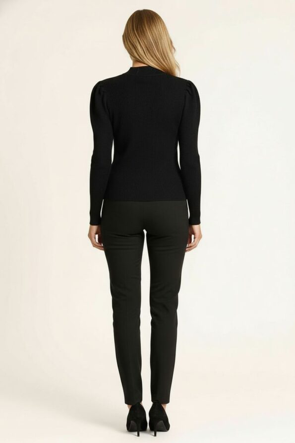 Suéter de manga larga con diseño plisado en el tejido que aporta textura y elegancia, aplicaciones de piedras decorativas en la parte superior que brindan un toque sofisticado y moderno, cuello redondo acanalado que mejora el ajuste y mantiene la forma, confección en punto elástico que se adapta al cuerpo proporcionando confort y movilidad, acabado reforzado en puños y dobladillo para mayor durabilidad