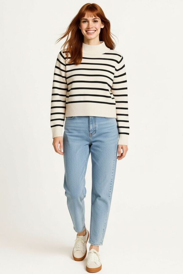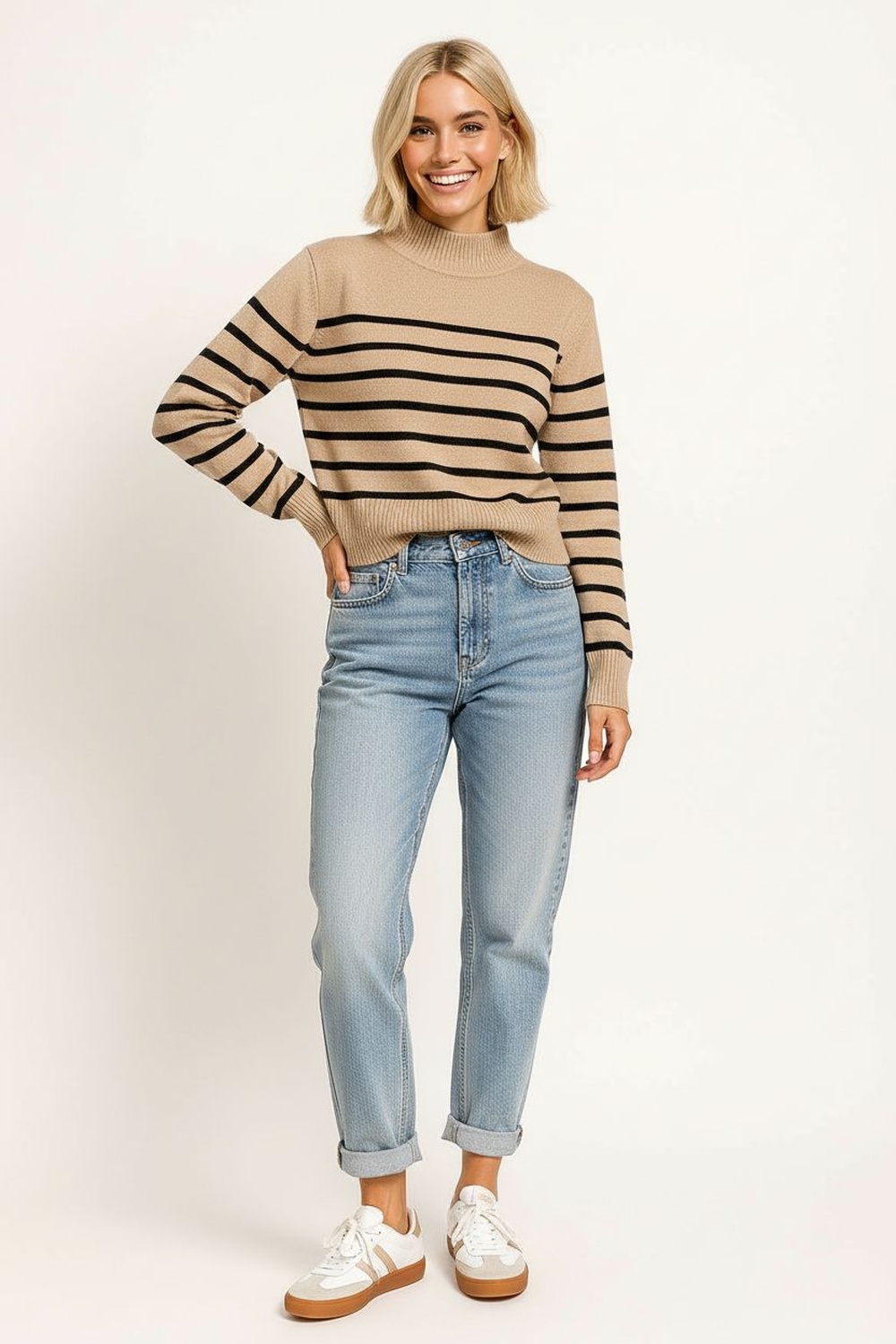 Suéter de manga larga confeccionado en viscosa que ofrece suavidad y elasticidad, cuello alto que aporta calidez y un estilo moderno, pretina ajustada que define la silueta y asegura mejor fit, tejido acanalado que brinda comodidad y ligereza, ideal para outfits casuales o combinaciones elegantes de temporada