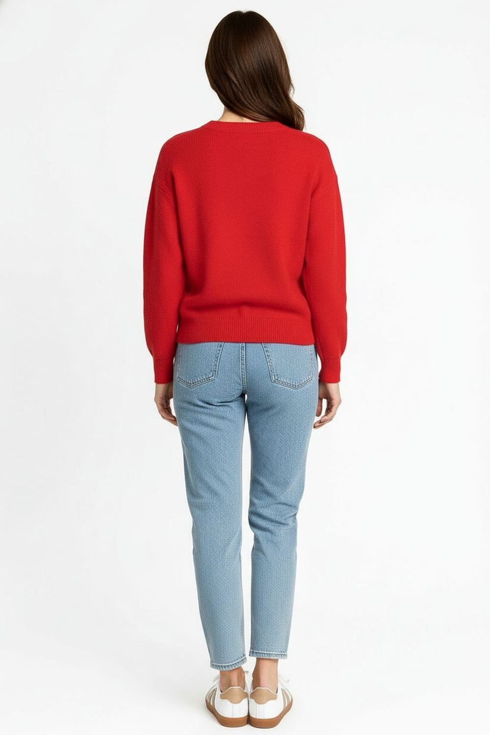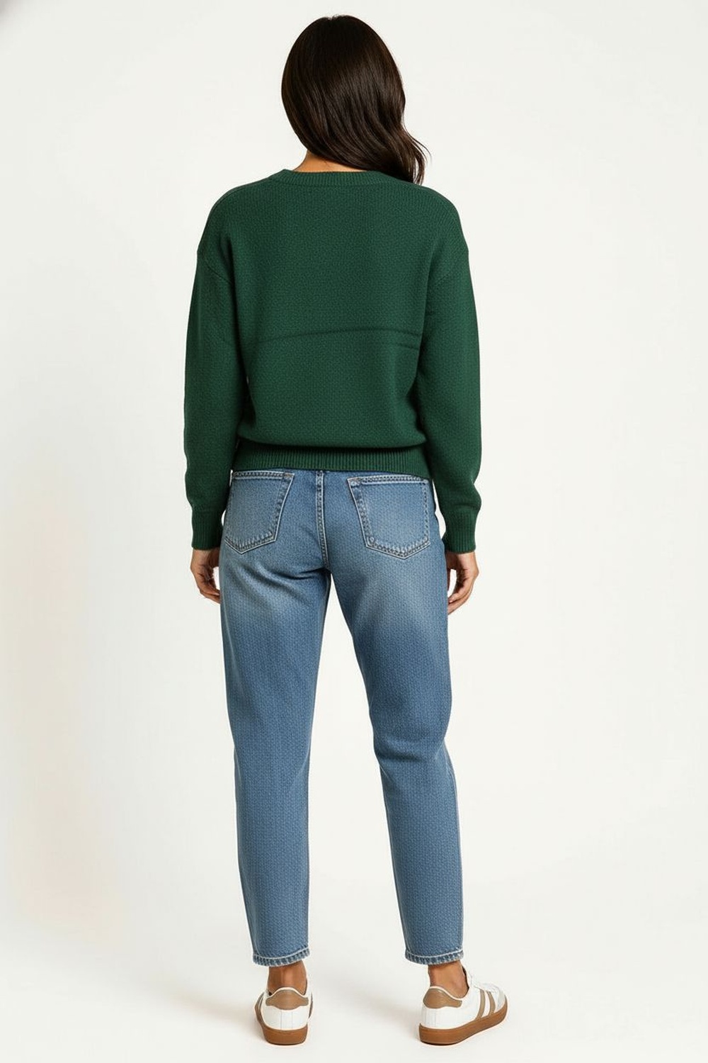 Suéter de punto fino con cuello semi alto, diseño corto con cuerpo suelto y manga vampiro que aporta movimiento, terminaciones en canalé que mantienen la forma y brindan un acabado pulido, confección en tejido suave y ligero
