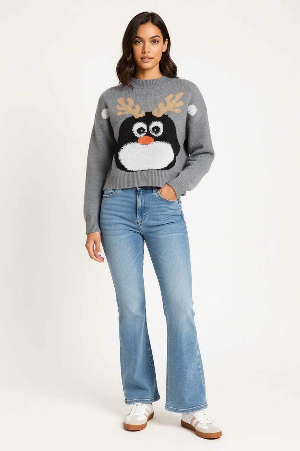 SUÉTER CON DISEÑO NAVIDEÑO POMPONES