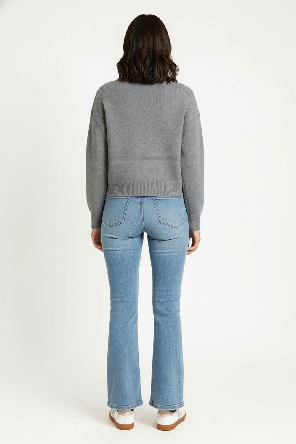 Suéter tejido con diseño decorativo al frente, cuello semi alto y manga larga con terminación en puño, textura suave que proporciona abrigo sin sacrificar ligereza, confección en punto elástico que mejora el confort y mantiene la forma original