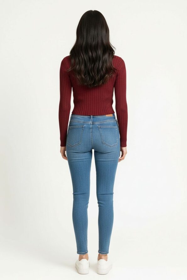 Suéter de corte ajustado con cuello alto que aporta calidez y estilo moderno, manga larga que brinda cobertura cómoda y versátil, terminación en cintura que define la silueta y favorece combinaciones con prendas de tiro alto, confección en tejido de punto elástico que se adapta al cuerpo ofreciendo suavidad y libertad de movimiento, ideal para outfits de temporada que buscan confort y sofisticación casual