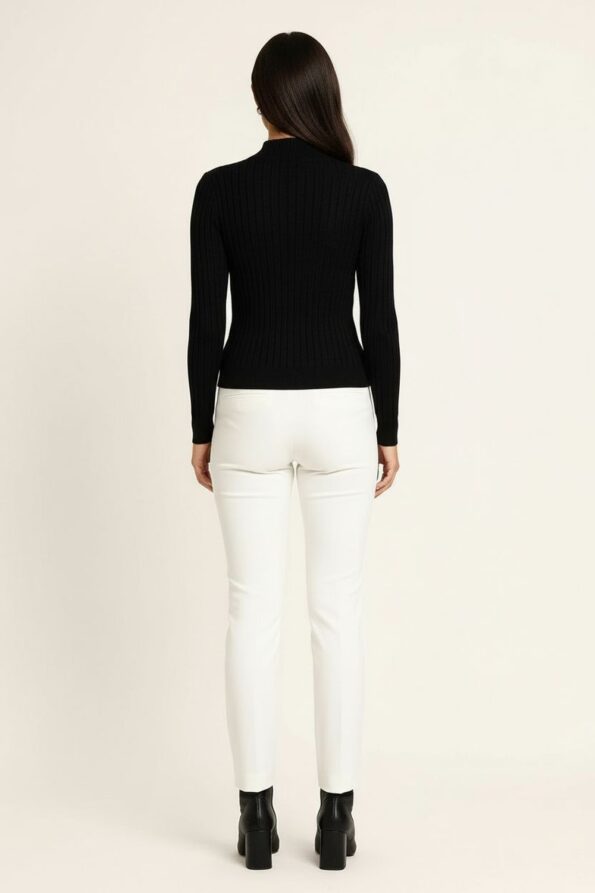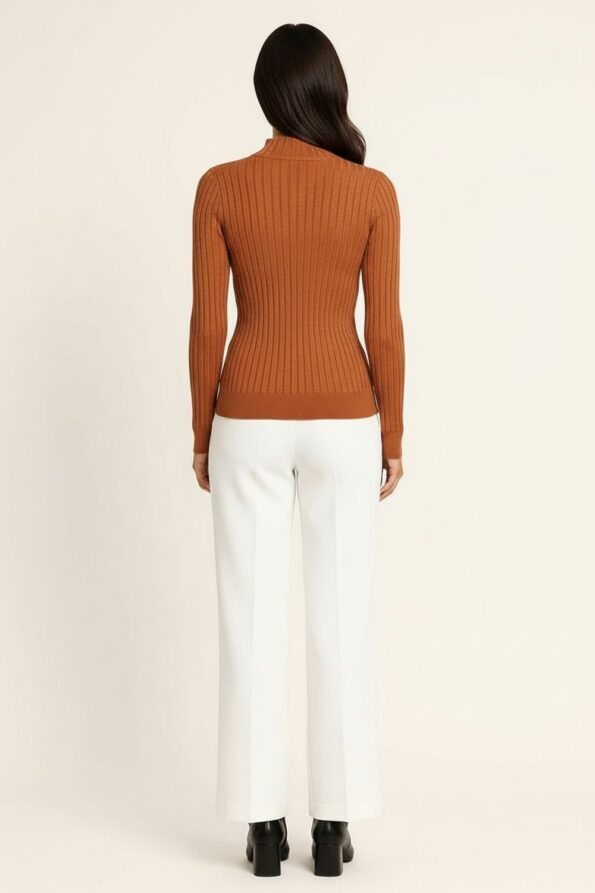 Sueter de manga larga con cuello alto que aporta elegancia y abrigo, tejido acanalado que se adapta al cuerpo resaltando la silueta, corte recto a la cadera que proporciona comodidad y ajuste favorecedor, terminaciones reforzadas en puños y dobladillo que mantienen la forma tras cada uso, confección en punto elástico que brinda suavidad y libertad de movimiento en todo momento