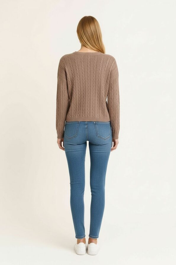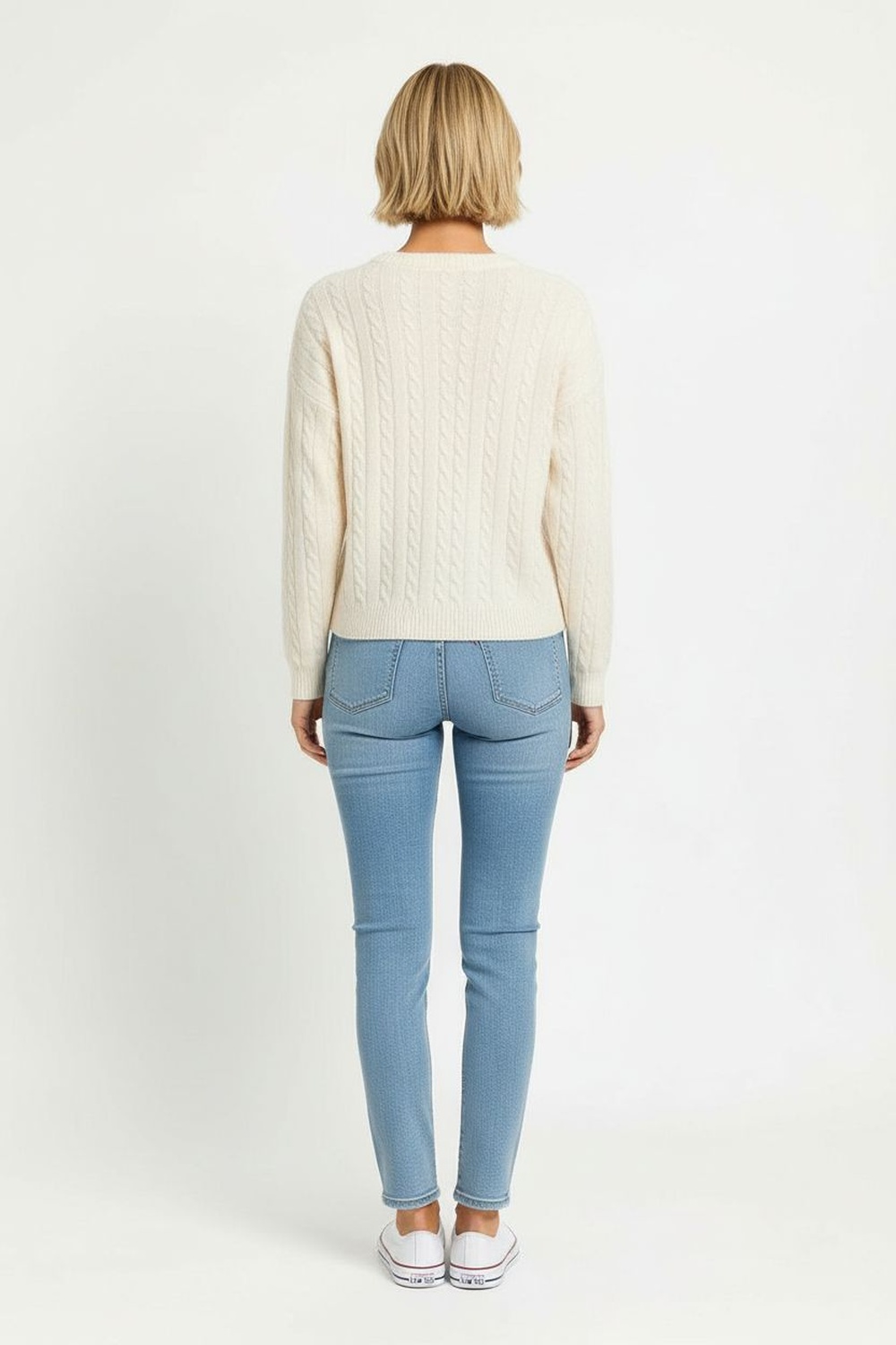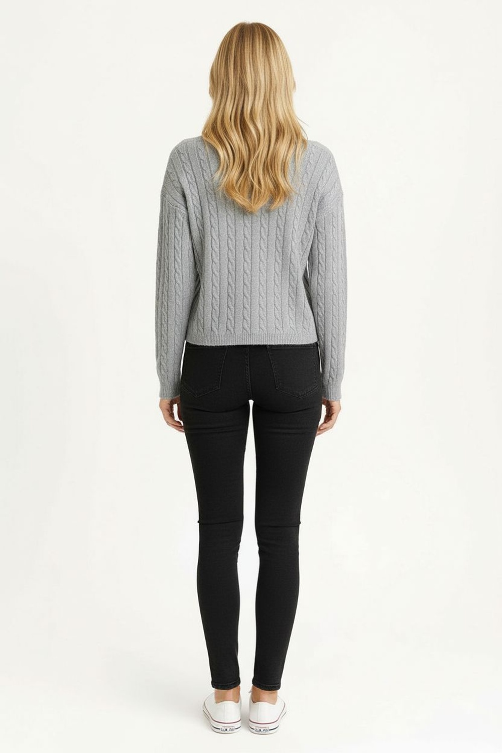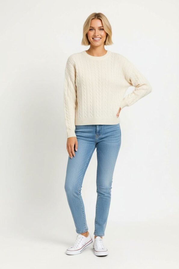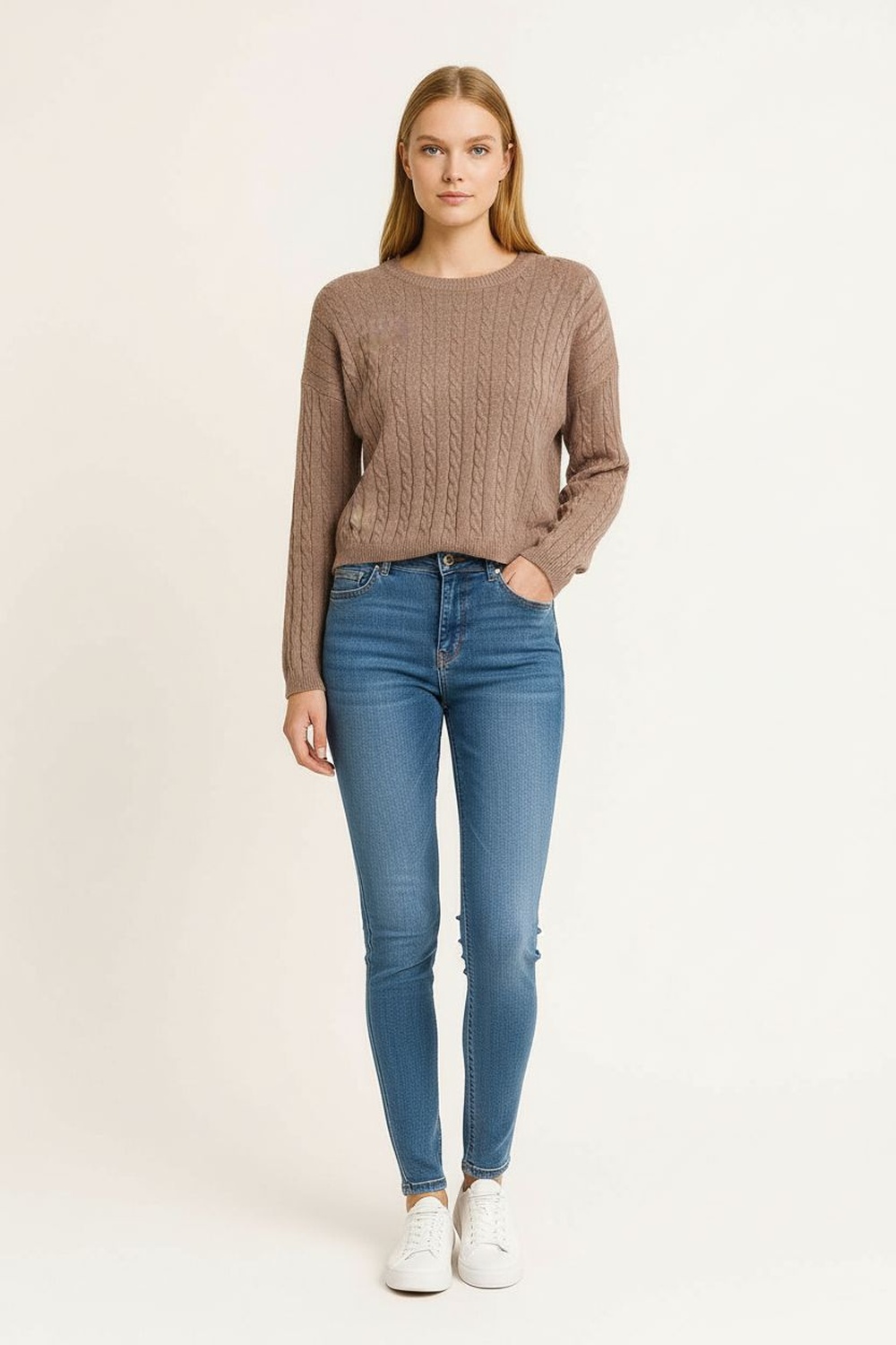 Suéter de manga larga con cuello redondo que aporta comodidad y versatilidad, tejido de punto con diseño de trenzas que añade textura y un acabado moderno, corte recto con largo a la cintura que favorece la silueta y permite un look actual, acabados en canalé en cuello, puños y basta que mejoran el ajuste y la durabilidad de la prenda