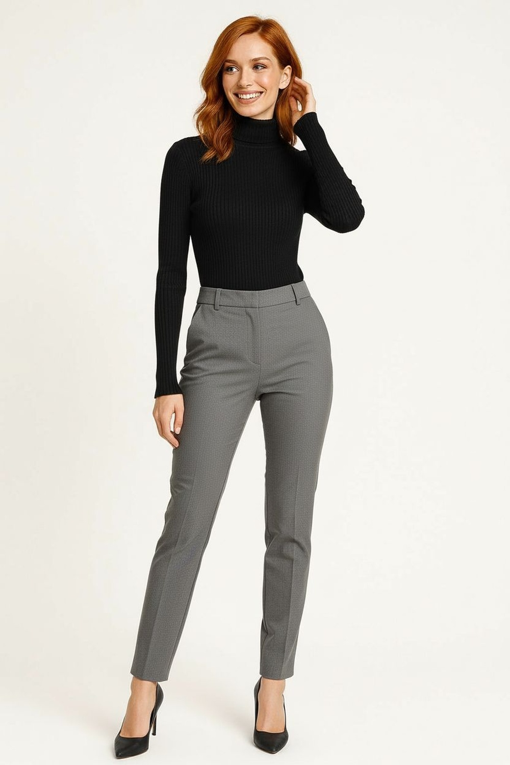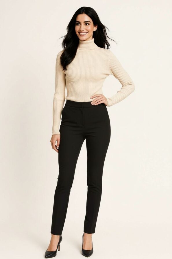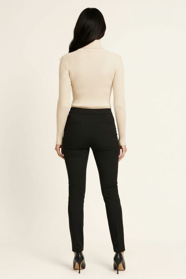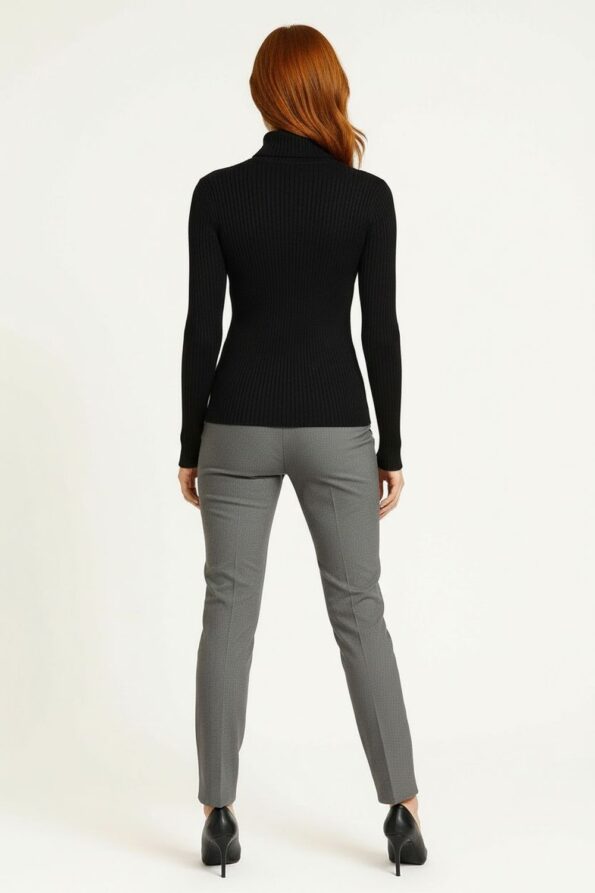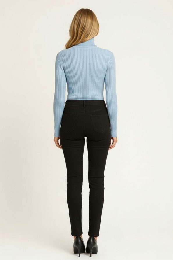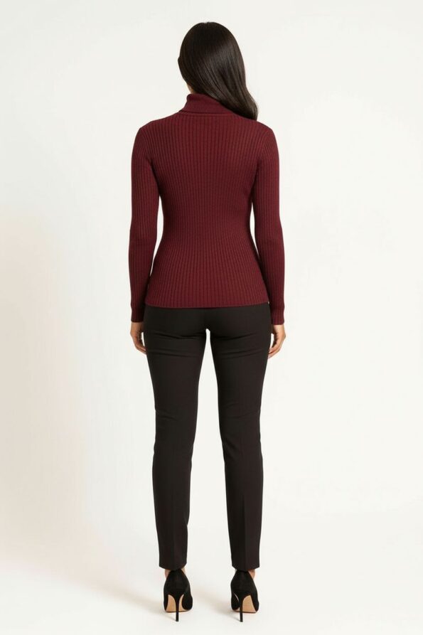 Suéter de manga larga confeccionado en tejido rib que aporta elasticidad y ajuste al cuerpo, cuello alto que brinda mayor abrigo y un toque sofisticado, silueta entallada que estiliza la figura, confección en tela suave y ligera que garantiza comodidad y versatilidad en la temporada