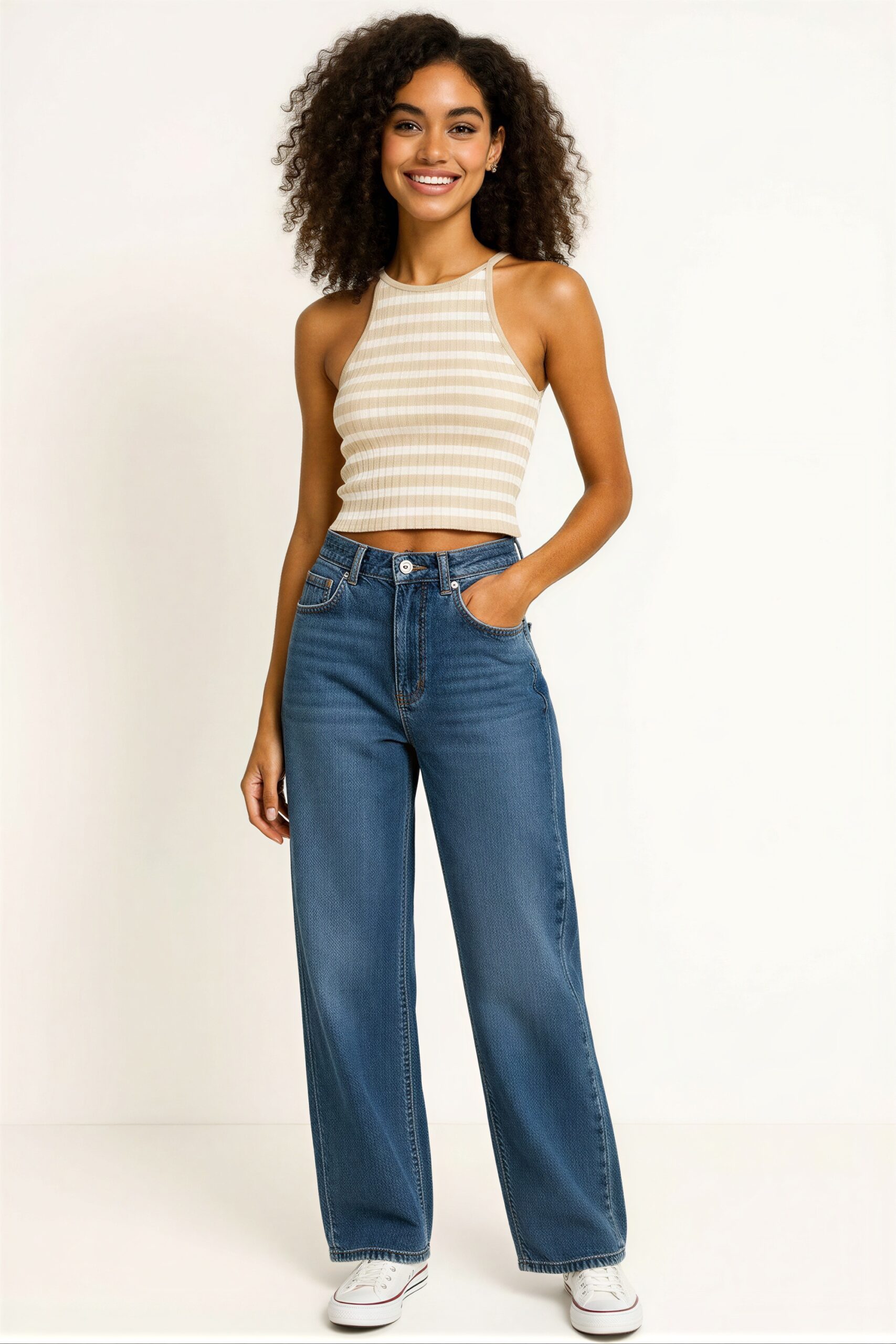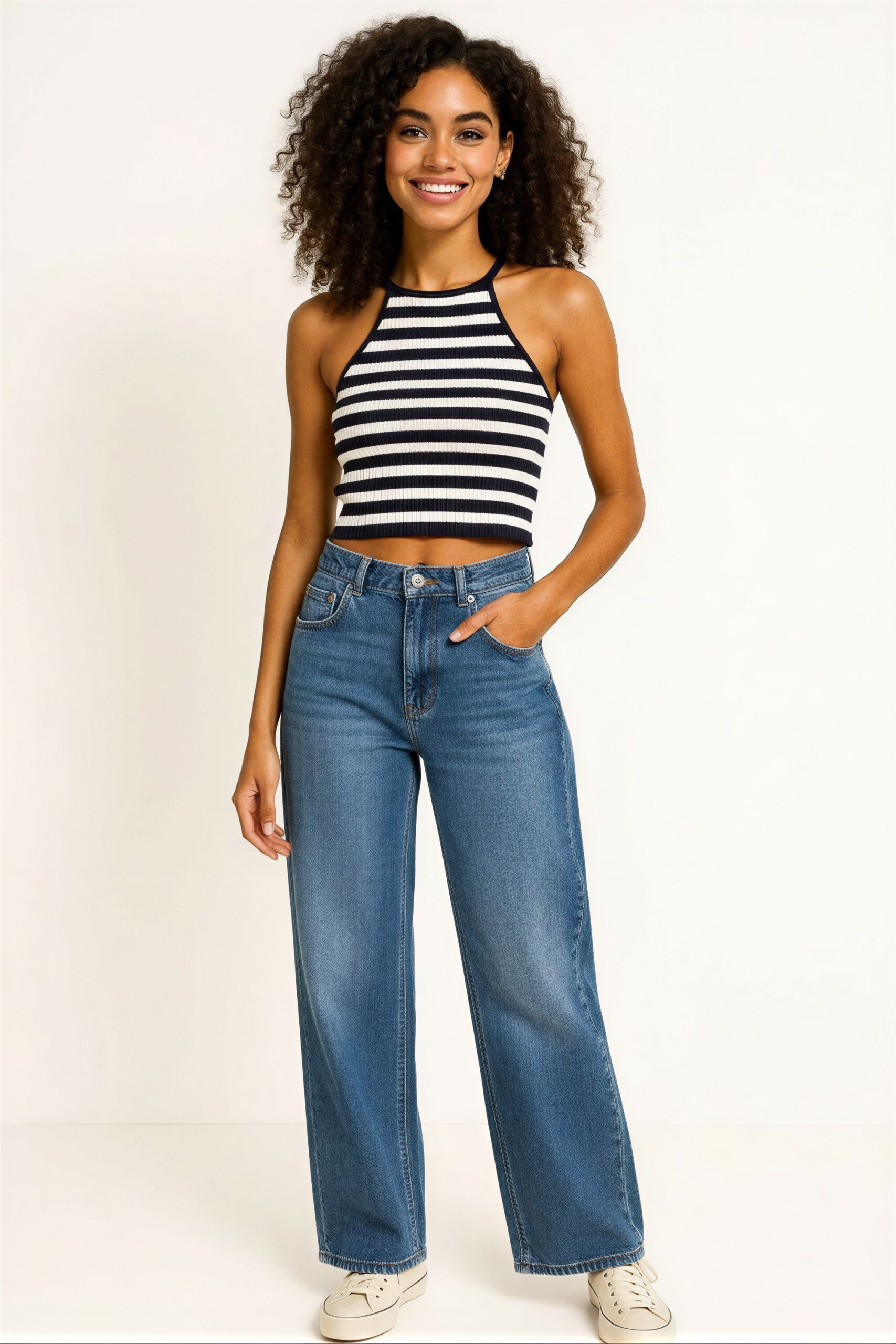Suéter tejido ligero de ajuste al cuerpo con diseño sin mangas tipo halter, cuello alto y terminado recto, textura suave y estructura flexible que brinda comodidad al uso