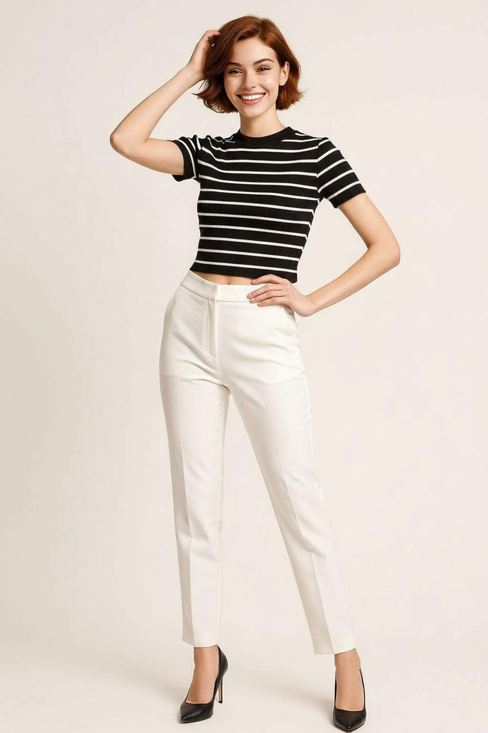 Suéter corto de manga larga con cuello redondo clásico, corte recto que brinda confort térmico, largo arriba de la cintura que aporta practicidad, confección en tejido de punto suave y flexible, terminados firmes que conservan la forma