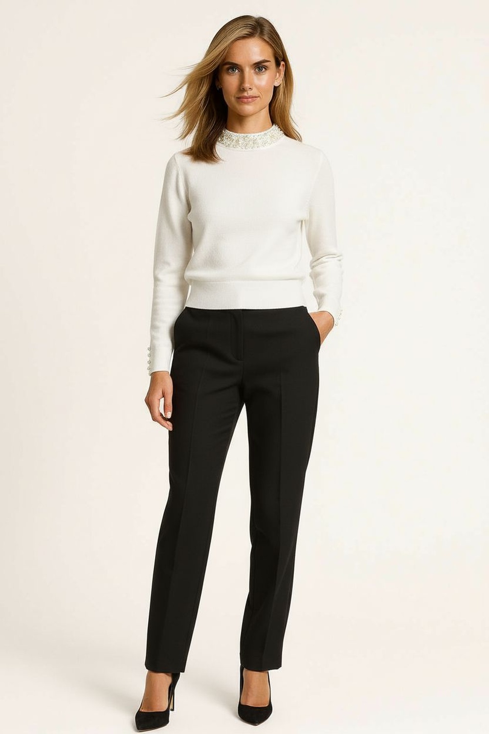 SUÉTER PERLAS EN CUELLO Y PUÑO