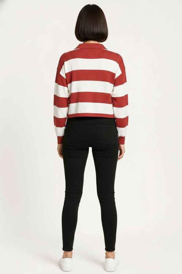 Suéter crop tejido con diseño de punto acanalado que aporta textura y ajuste al cuerpo, escote redondo con terminación limpia que resalta la confección, detalle en corte pico que estiliza la figura y marca la cintura, mangas largas con acabado ceñido que proporcionan comodidad y libertad de movimiento, pretina con refuerzo que mantiene la forma de la prenda