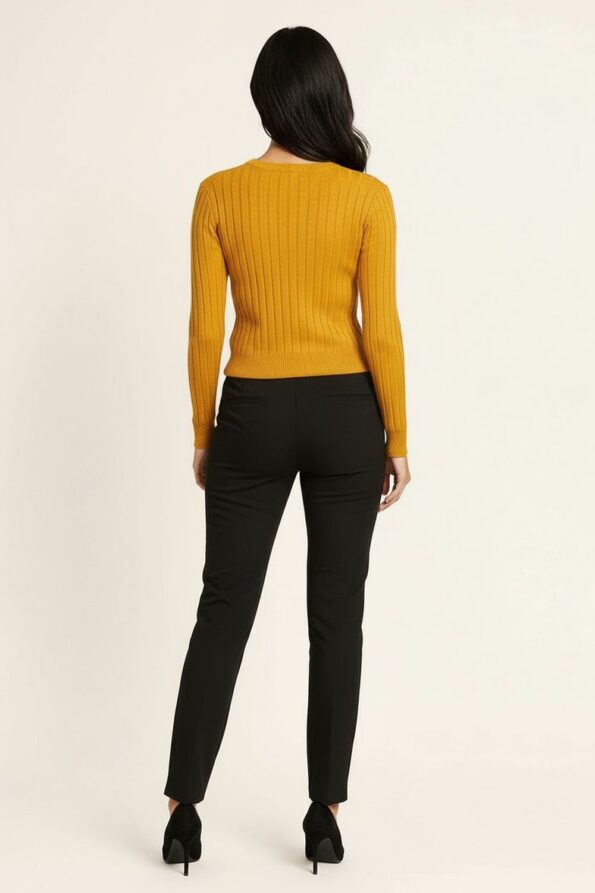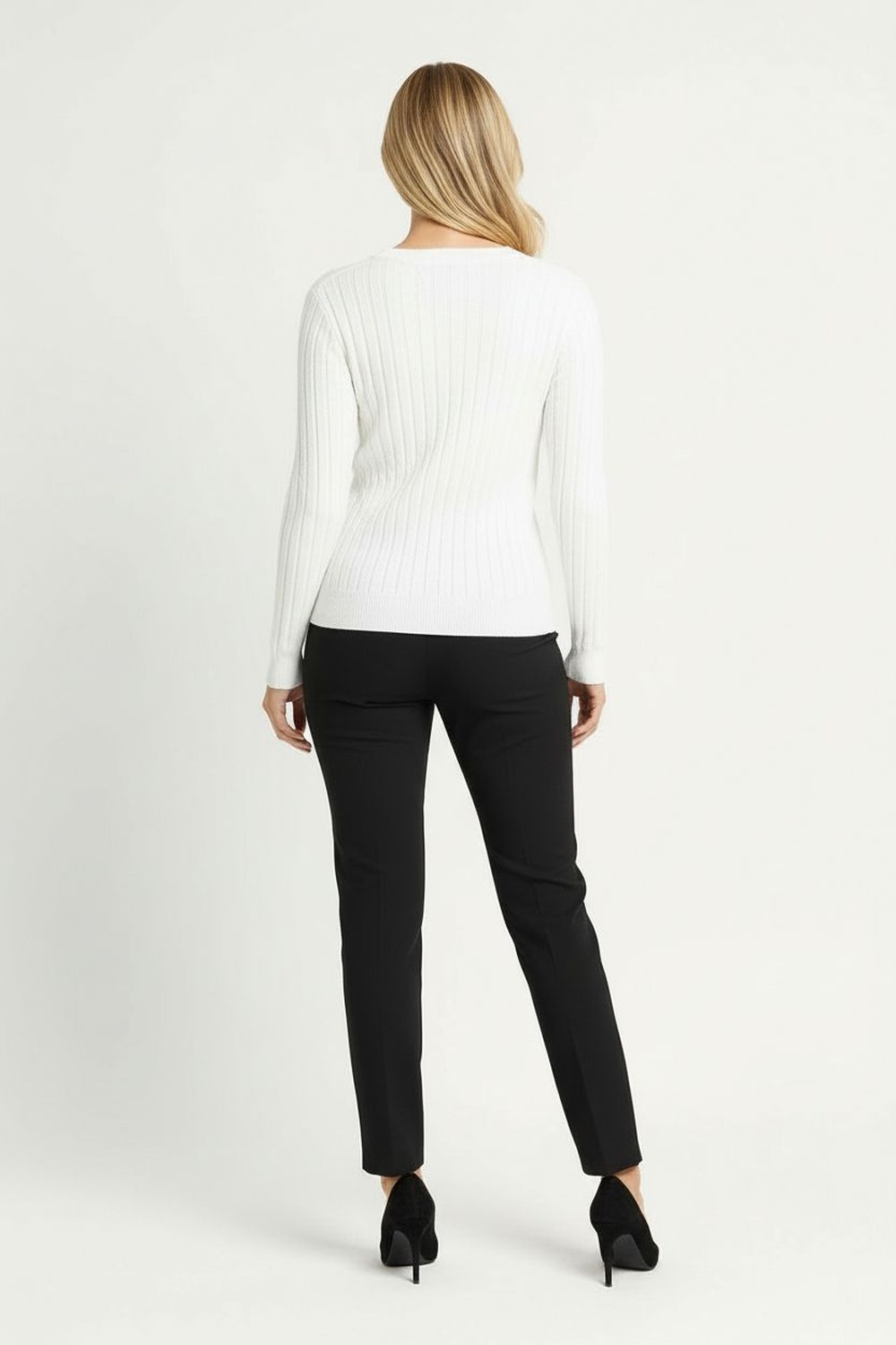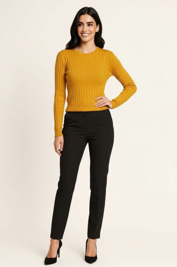 Sueter tejido de manga larga con diseño en canalé que se ajusta a la silueta resaltando la figura, cuello redondo reforzado que conserva su forma y brinda un acabado limpio, corte a la cadera que permite un ajuste cómodo y favorecedor, tejido elástico que ofrece libertad de movimiento y sensación ligera al portar, confección suave que aporta confort y estilo en todo momento