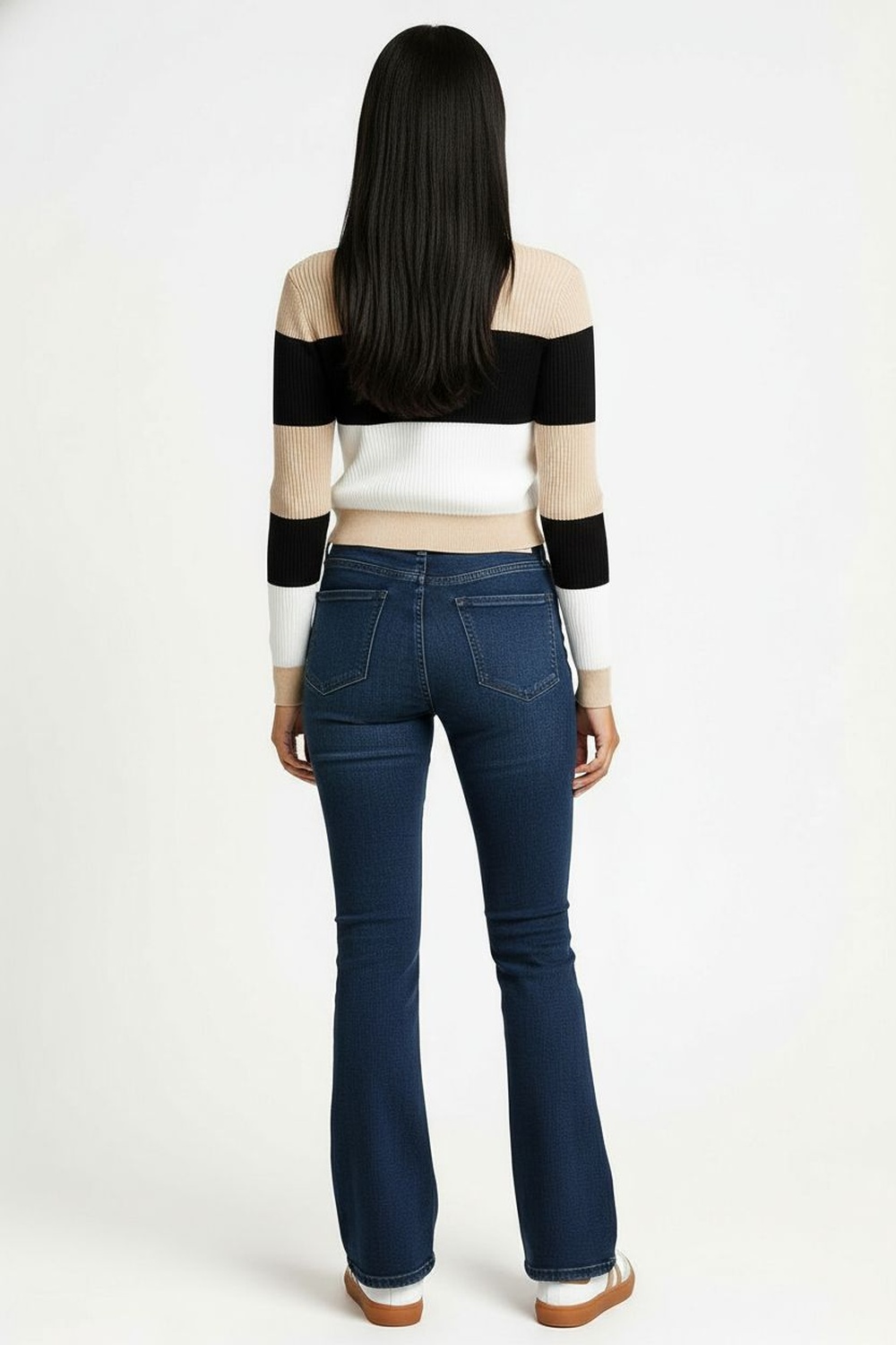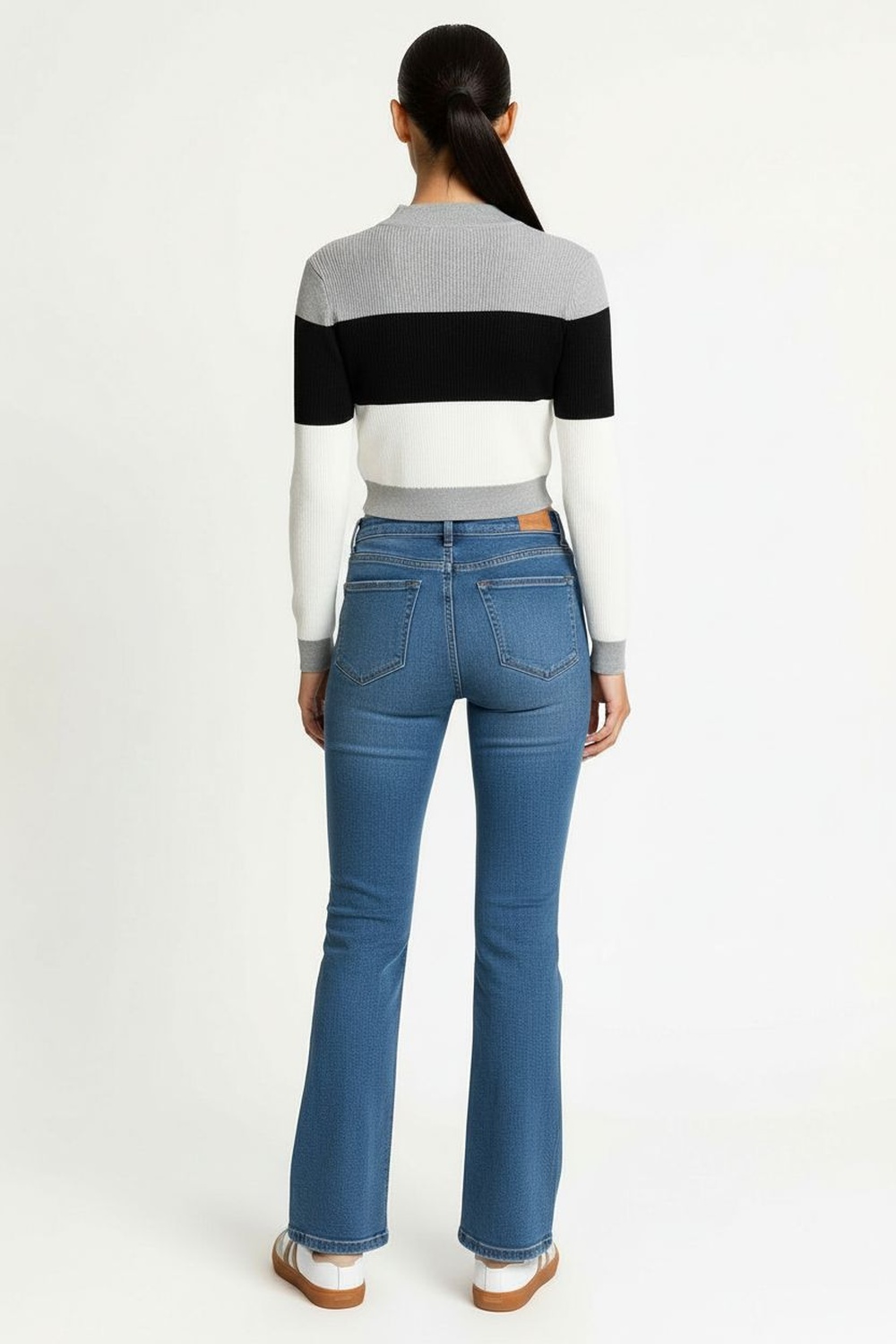 Suéter de punto con cuello alto estructurado que brinda calidez, corte ajustado que se adapta al torso, mangas largas con puño firme que mantiene su forma, diseño rayado que aporta detalle visual, confección suave con elasticidad integrada para mayor comfort