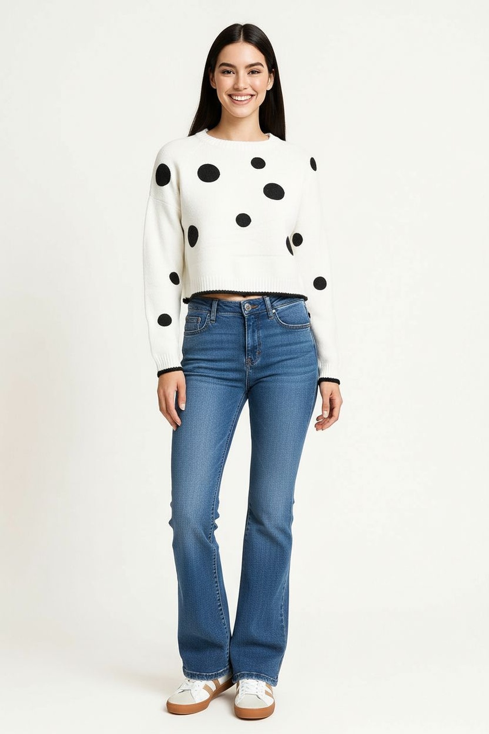 Suéter de manga larga confeccionado en tejido de punto con textura acanalada que aporta comodidad, cuello tipo polo con detalle en contraste que realza el diseño, corte a la cintura que favorece una silueta estilizada, puños y pretina con acabado elástico que aseguran un ajuste cómodo y moderno
