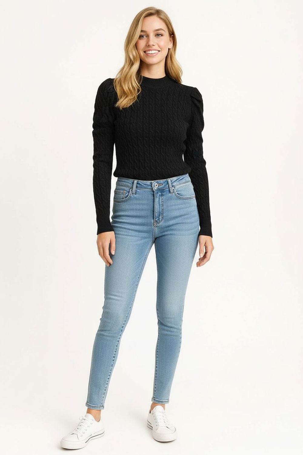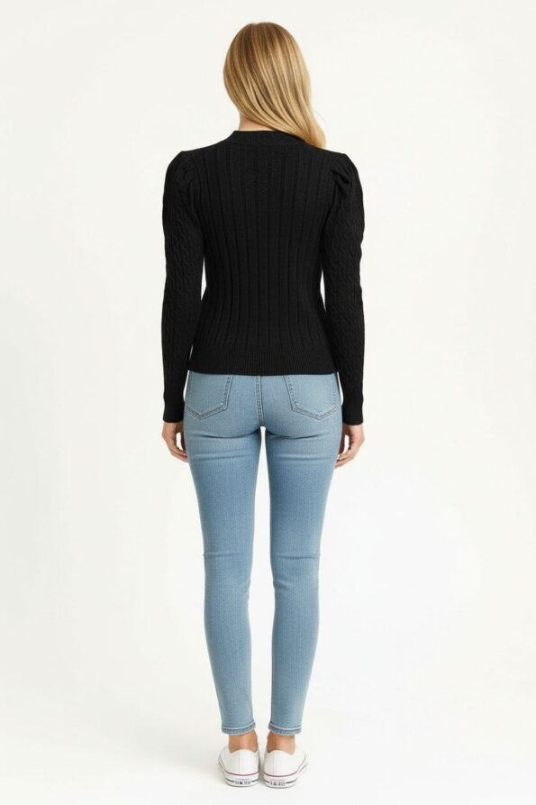 Suéter de manga larga con tejido tipo trenza al frente que aporta textura y estilo, cuello redondo acanalado que mantiene su forma con el uso, confección en punto elástico que se adapta al cuerpo ofreciendo comodidad y movilidad, diseño corto que estiliza la silueta y resalta la cintura, acabado reforzado en puños y dobladillo que brinda durabilidad y un aspecto moderno