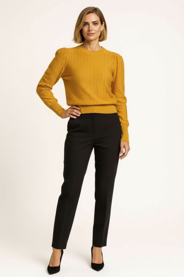 Suéter básico con cuello alto ideal para la temporada de otoño e invierno, confeccionado en tejido suave y ligero que brinda calidez y comodidad, mangas largas clásicas que aportan versatilidad y estilo, corte ajustado que estiliza la silueta y permite combinar fácilmente en atuendos casuales o formales, una prenda atemporal que se convierte en esencial para mantener un look sofisticado y moderno en cualquier ocasión