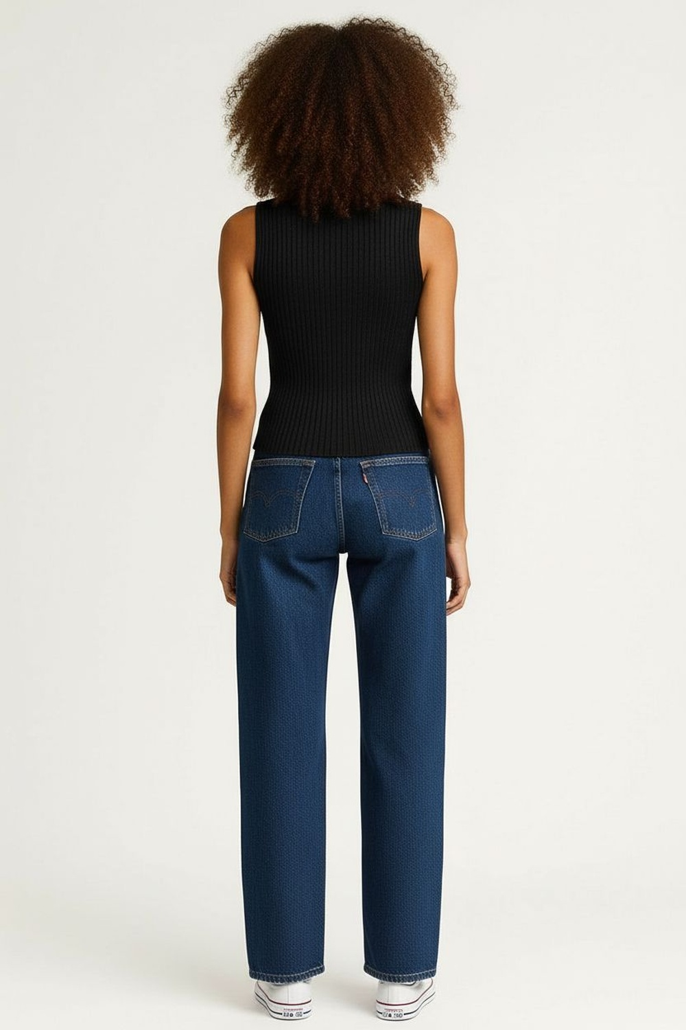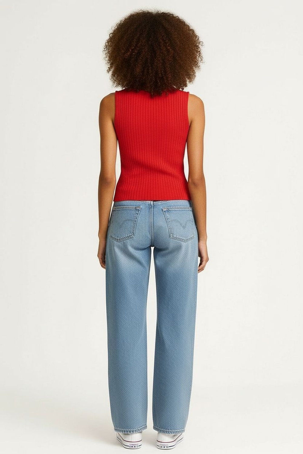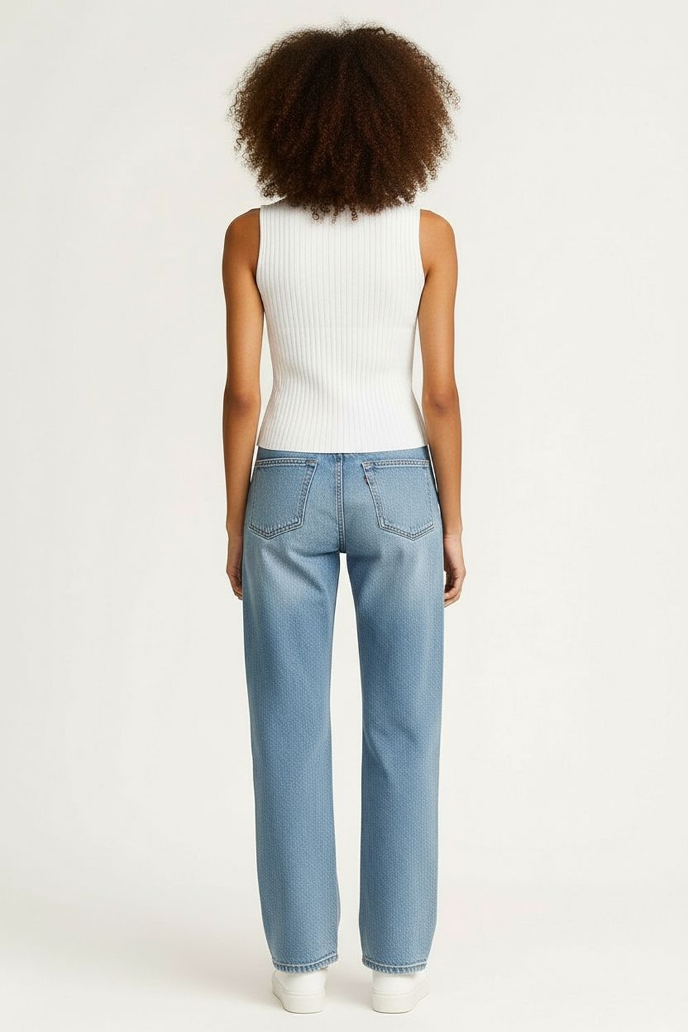 Top tejido sin mangas en punto ligero con textura acanalada, escote redondo con ribete integrado que aporta estructura, silueta recta ligeramente ajustada que se adapta al contorno, largo a la cintura con terminado limpio que brinda caída natural y comodidad en uso diario