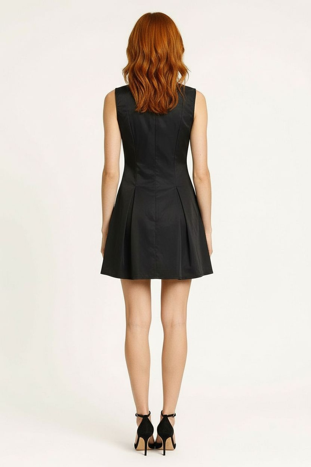 Vestido corto sin mangas con escote redondo abertura frontal ligera y falda con volumen en capas FIT REGULAR