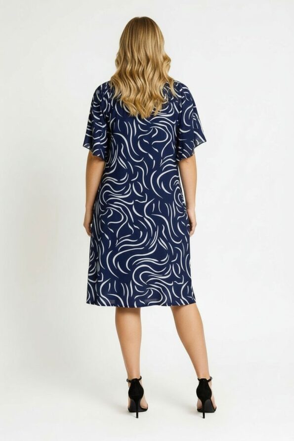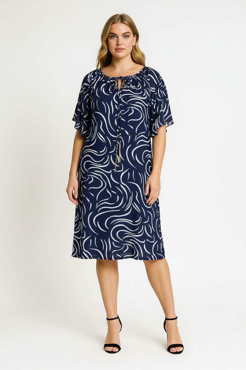 Vestido corto con escote redondo ajustable mediante lazo que aporta un detalle femenino y versátil, mangas cortas con ligero volumen que generan movimiento y frescura, corte recto que favorece la silueta brindando comodidad, confección en tela ligera y suave que garantiza libertad de movimiento y estilo moderno en cualquier ocasión
