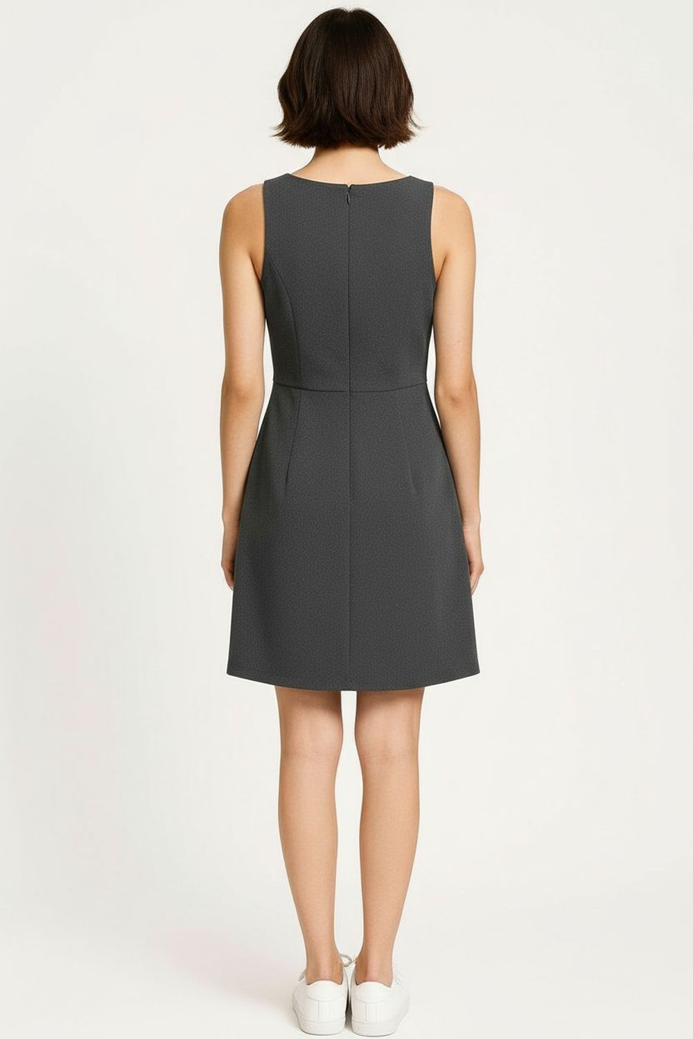 Vestido corto de tirantes anchos con escote cuadrado, confección en paño suave con textura firme, detalle tableado en el bajo que aporta movimiento, incluye cinturón del mismo material para un ajuste definido