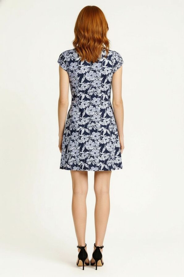 Vestido midi de manga corta con escote redondo y corte recto que aporta frescura, cinturón de amarre en la cintura que define la silueta, falda amplia de caída ligera que brinda movimiento, confeccionado en tejido suave que garantiza comodidad y versatilidad, terminaciones reforzadas que aportan durabilidad